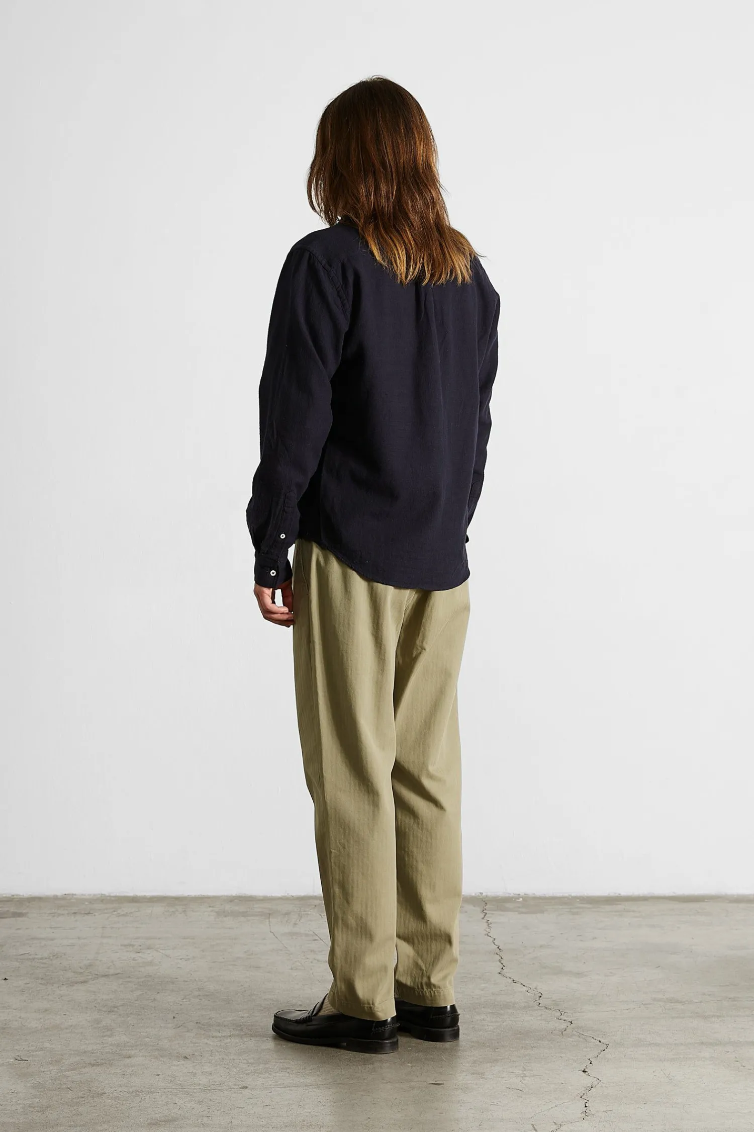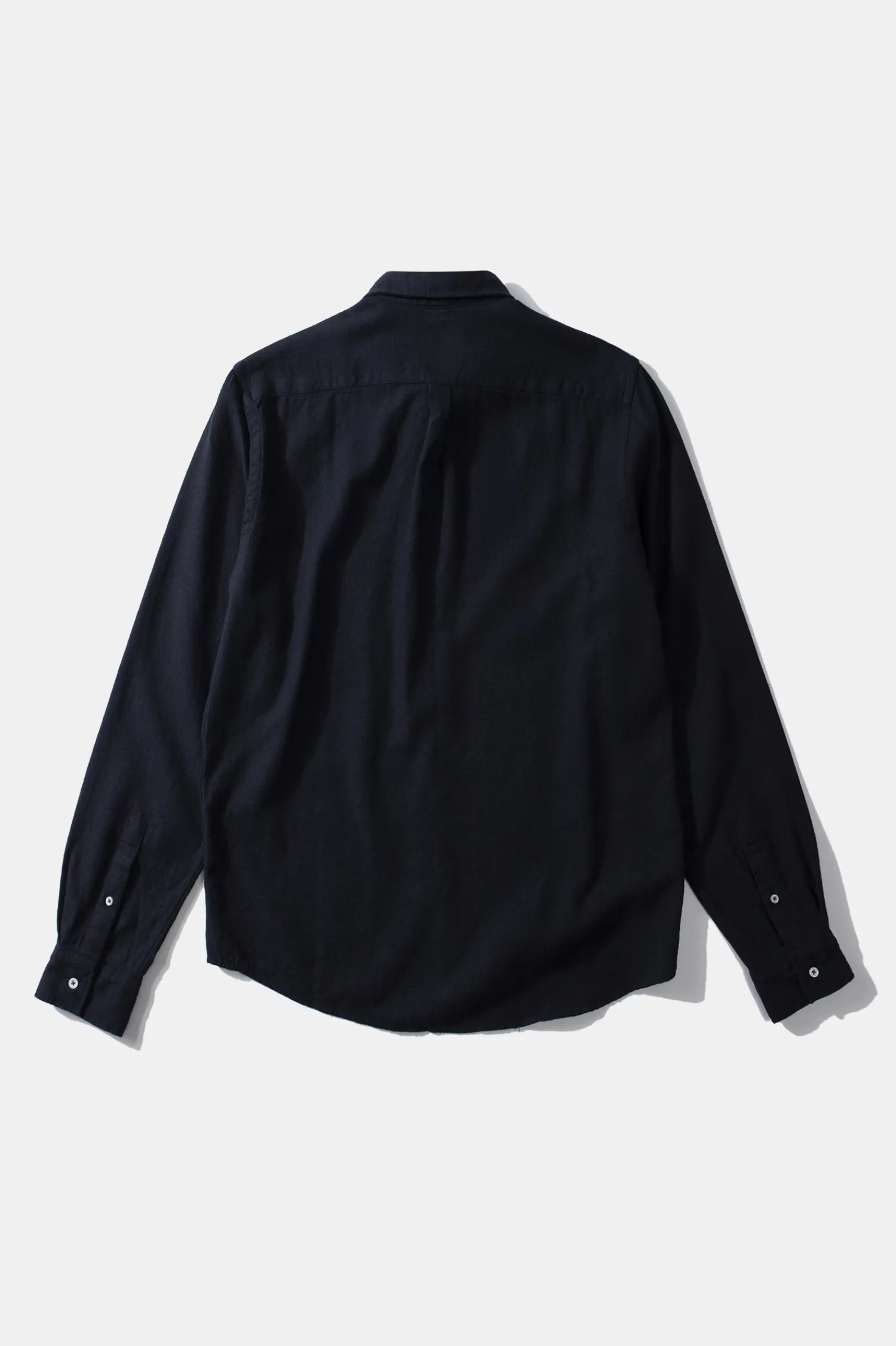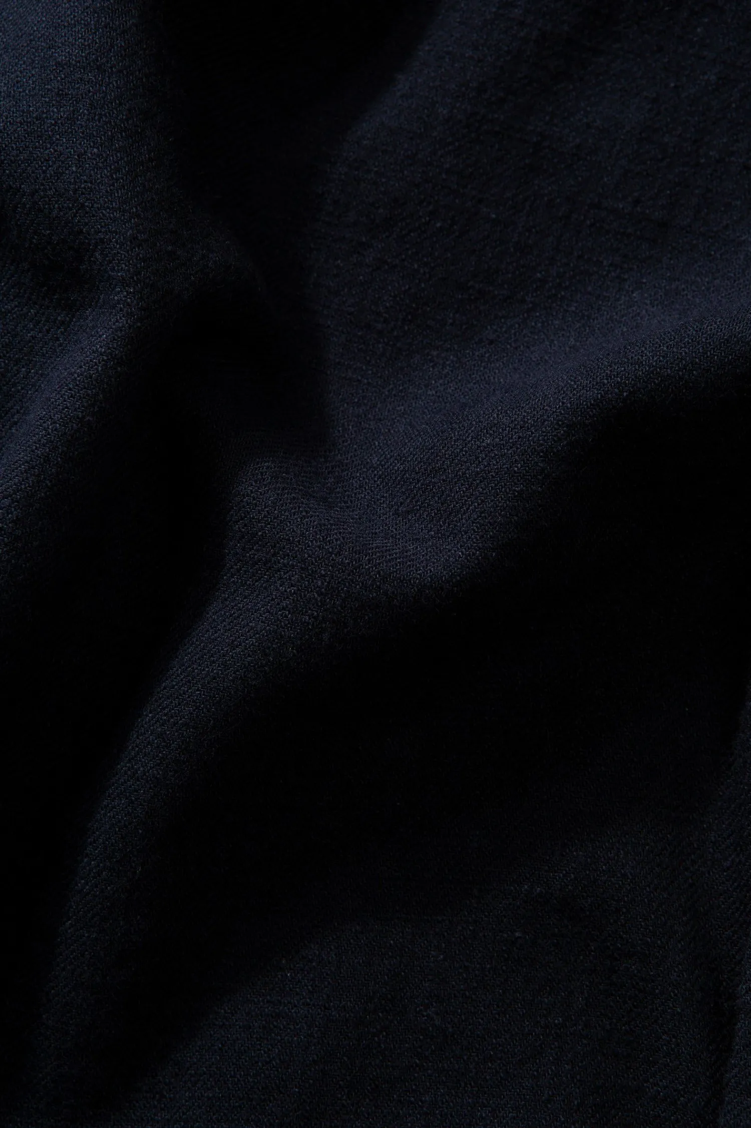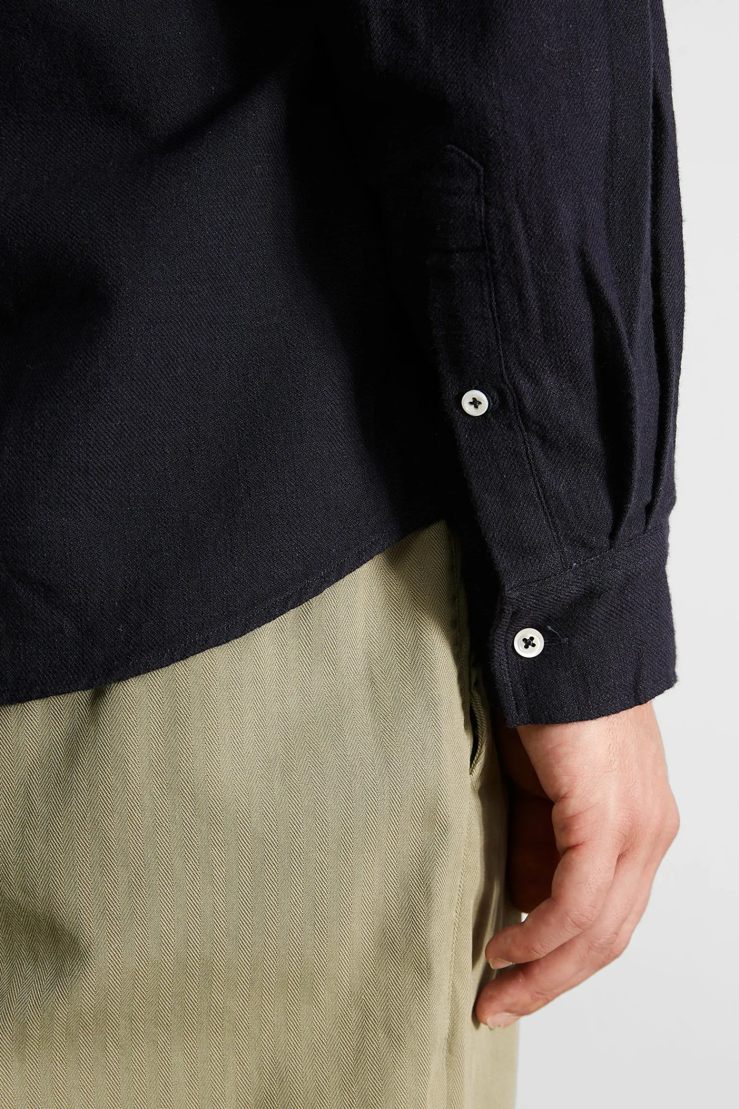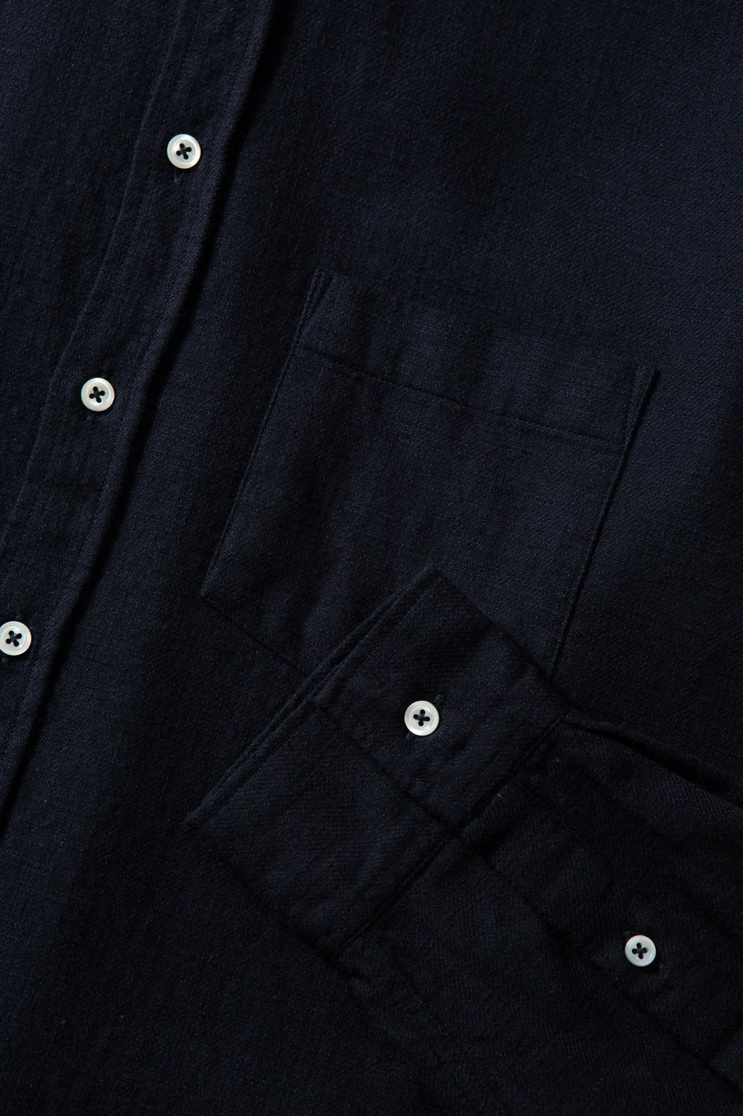 Camisa Azul Marino Confeccionada Con Hilos 100% Algodon. El Cuello De La Prenda Tiene Solapa De Pico, Manga Larga Y Termina En Un Bajo Redondeado. Bolsillo En El Lado Izquierdo Del Pecho.