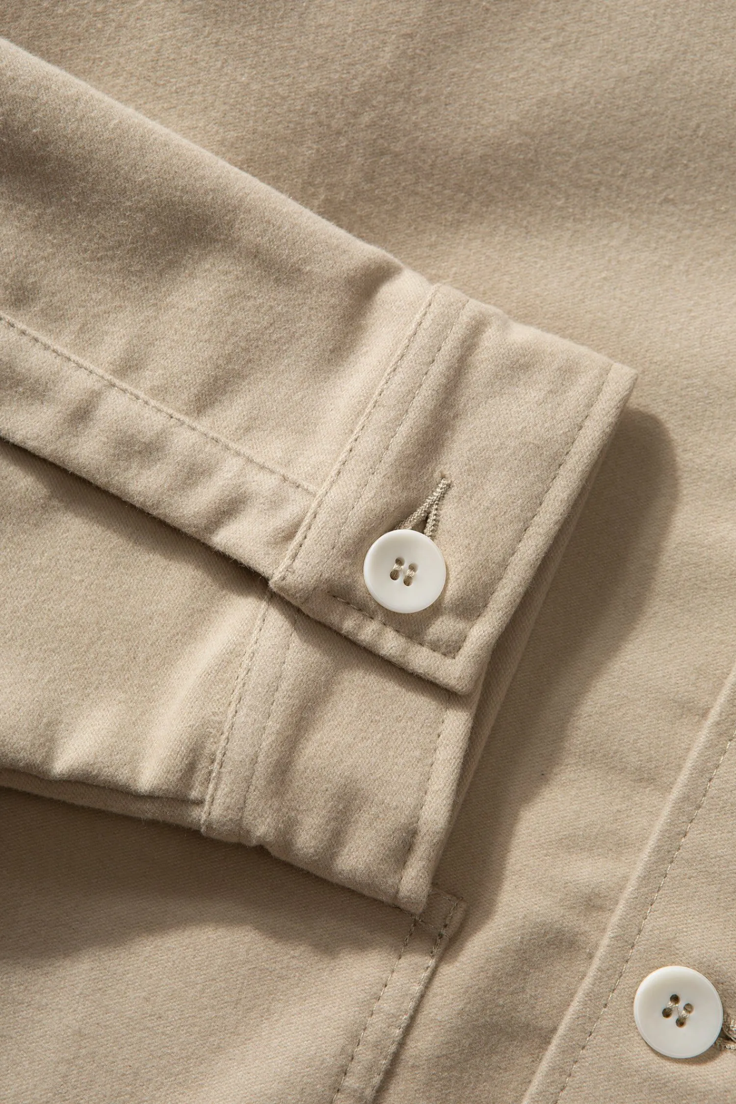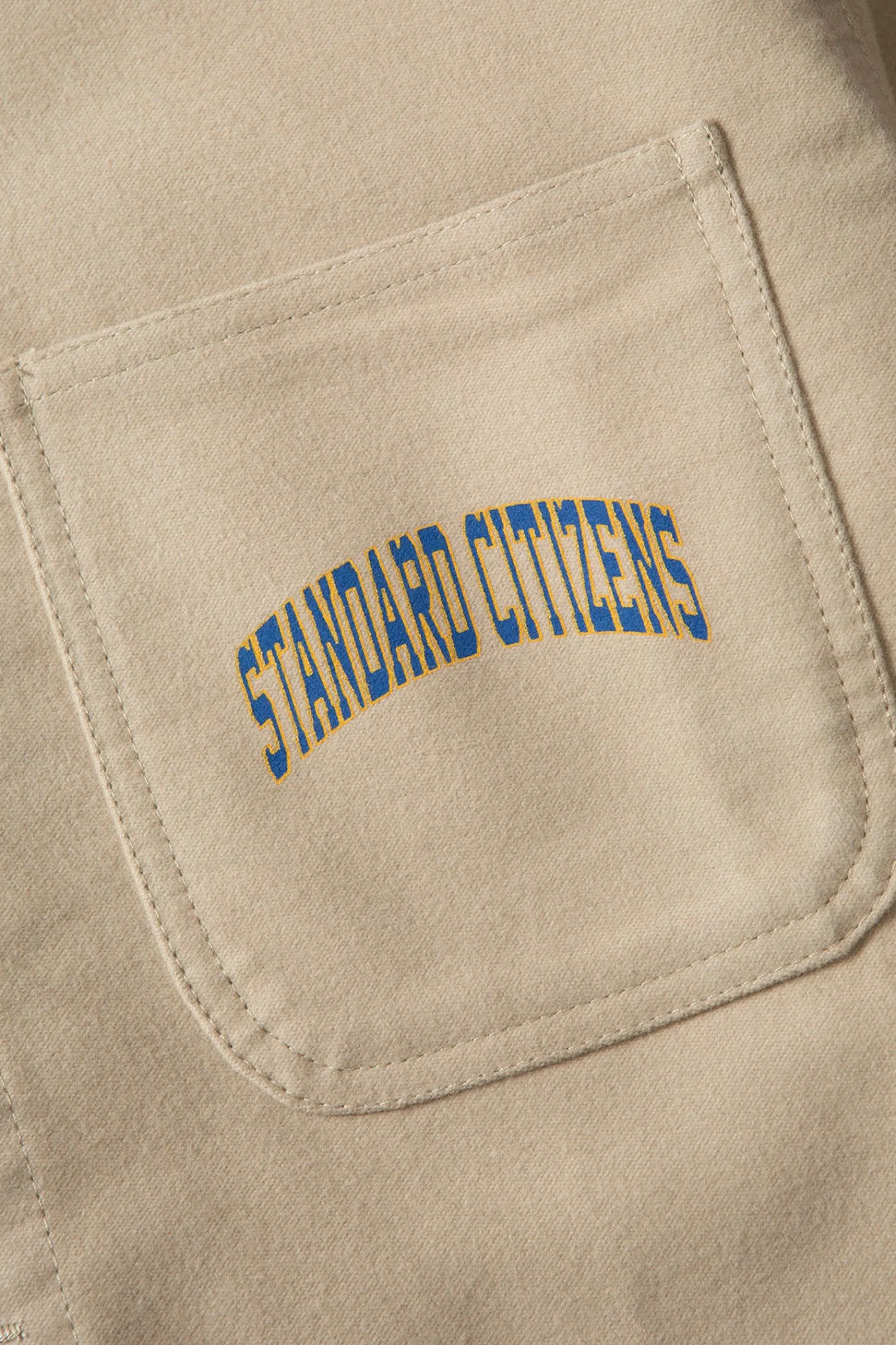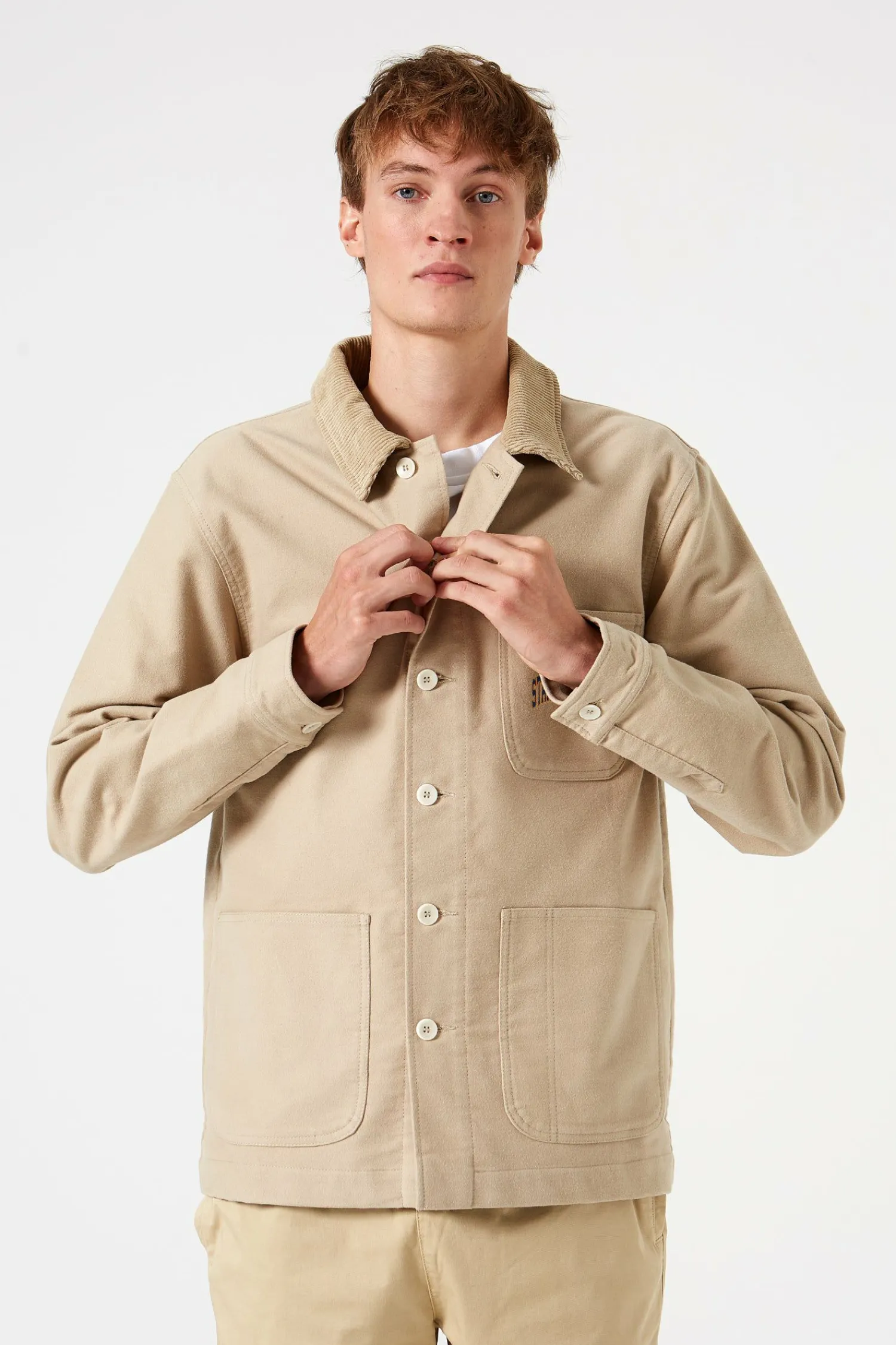 Chaqueta De Trabajo En Tejido Moleskin Y Con Un Bordado En El Pecho. Color Tostado. Cuenta Con Cierre De Botones Y Se Completa Con Tres Bolsillos De Parche En La Parte Delantera.