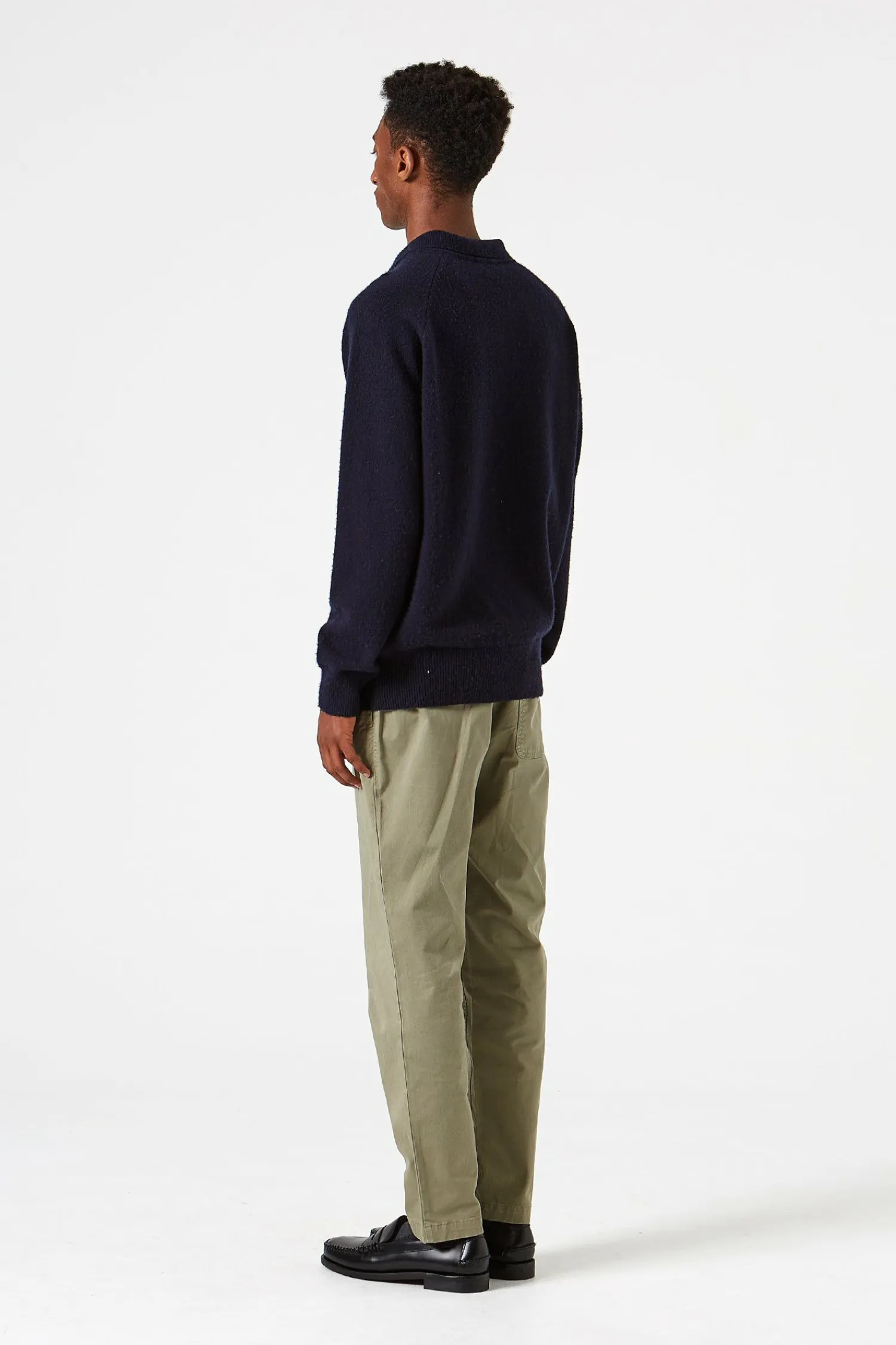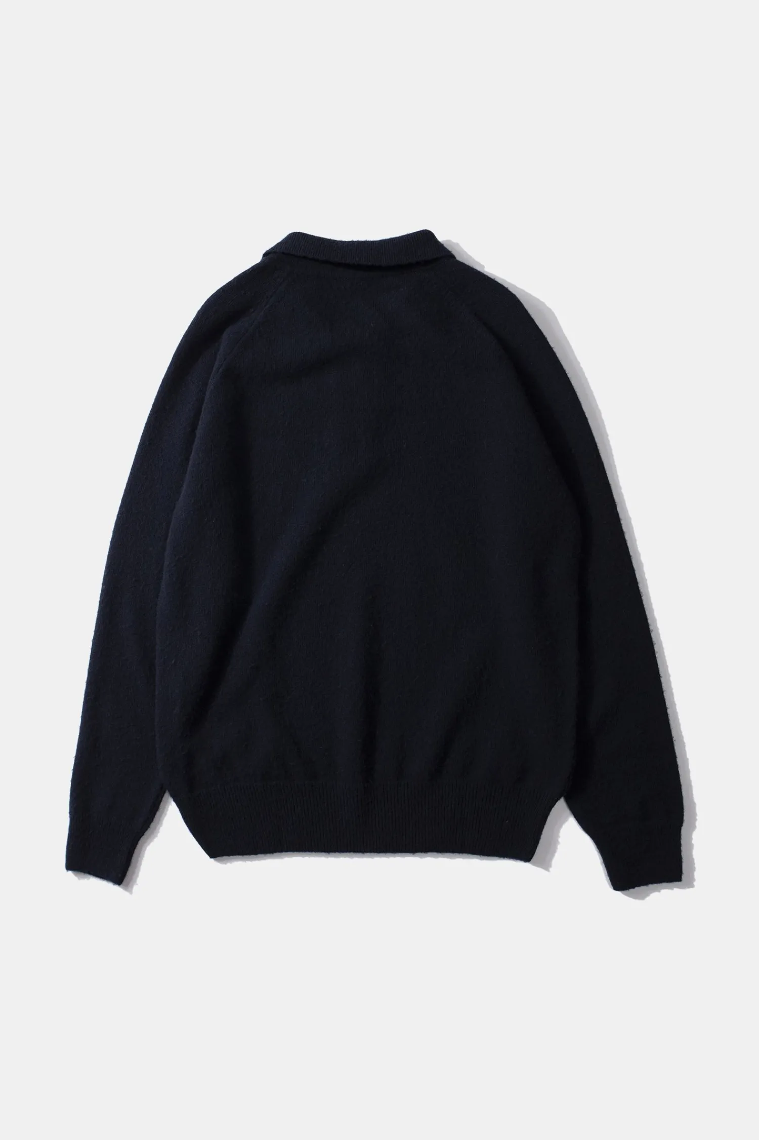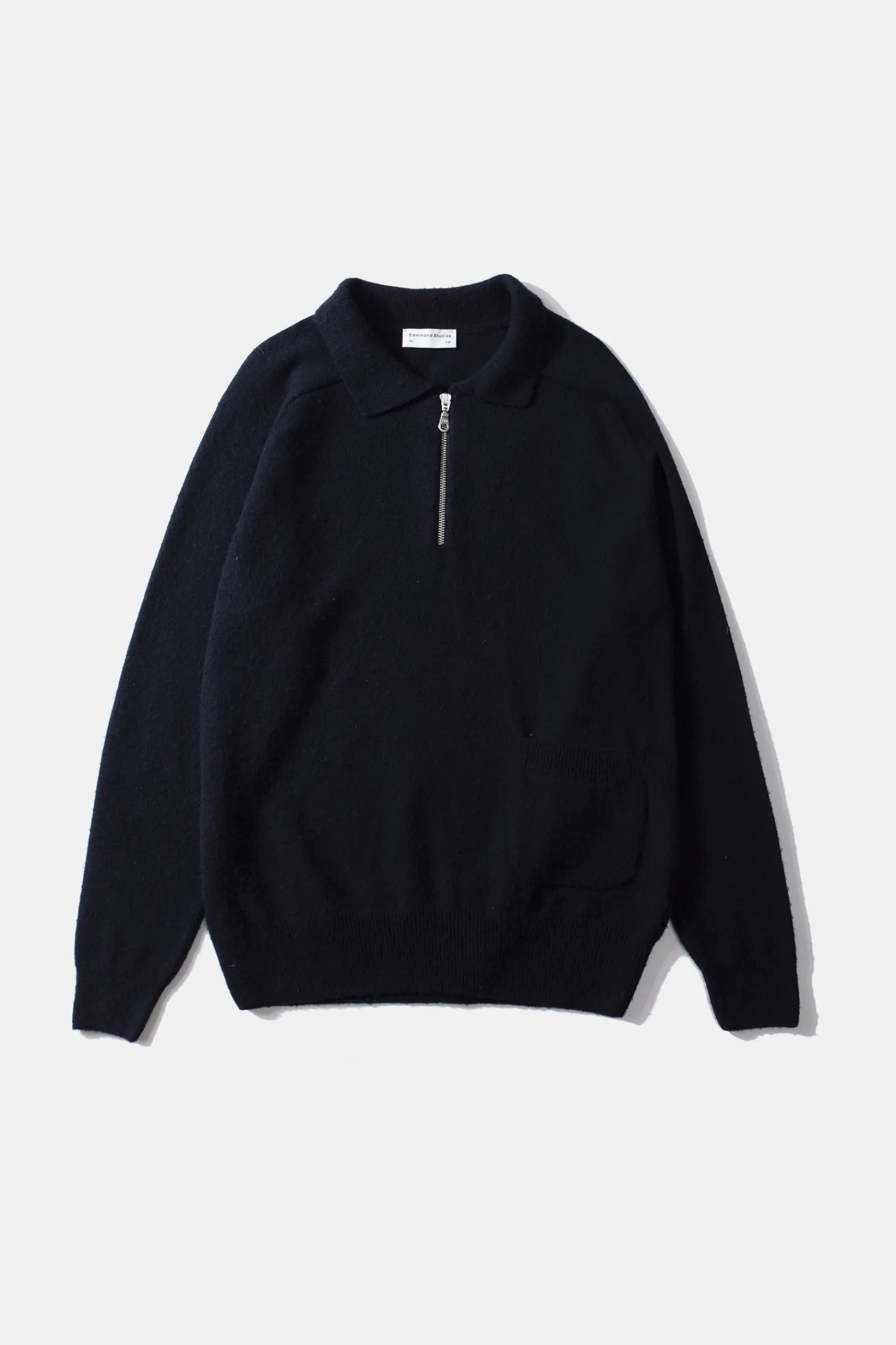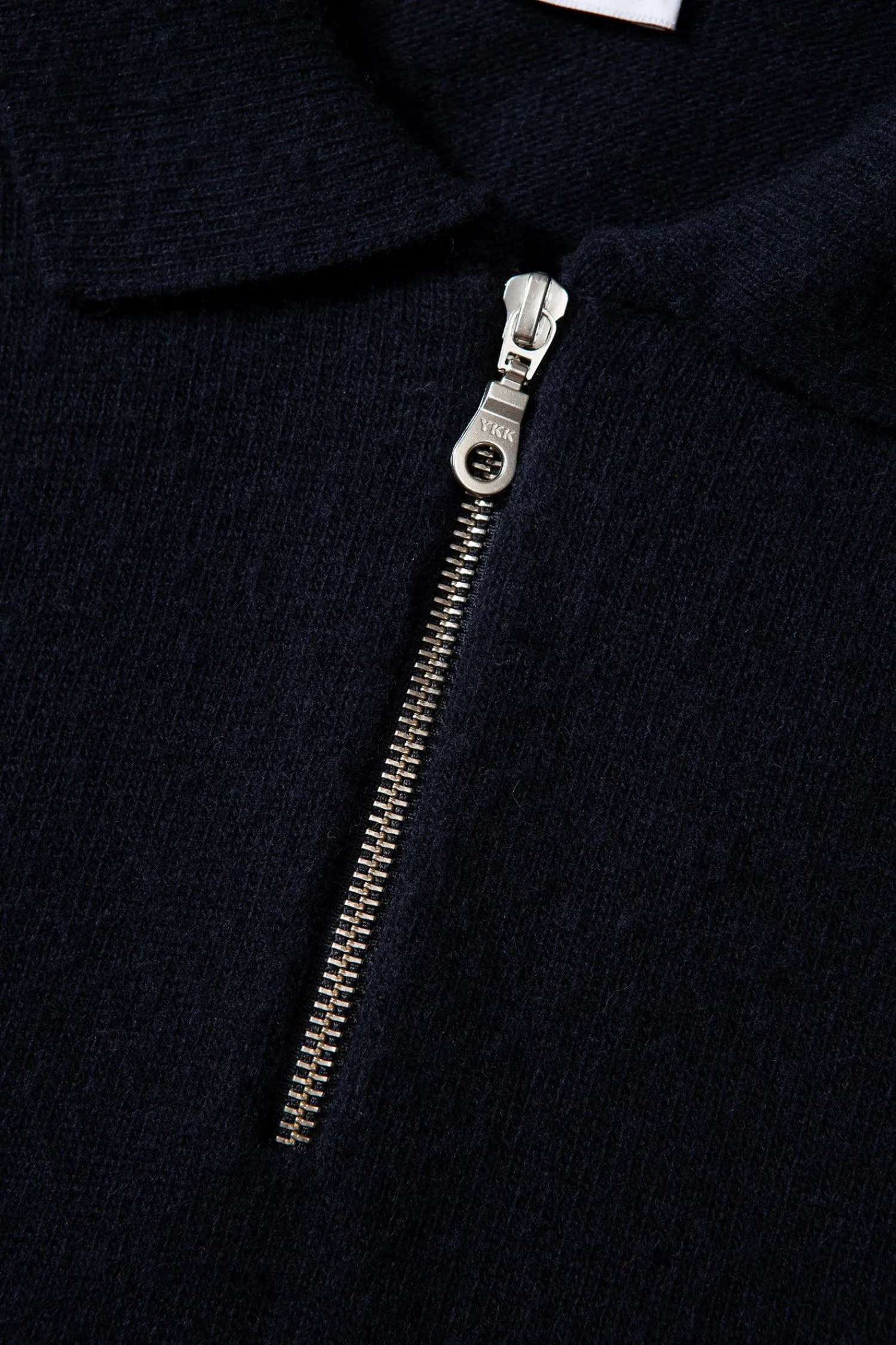 Jersey Con Cuello De Polo En Color Azul Marino. Fabricado En 100% Lana. Completado Con Cierre De Media Cremallera.