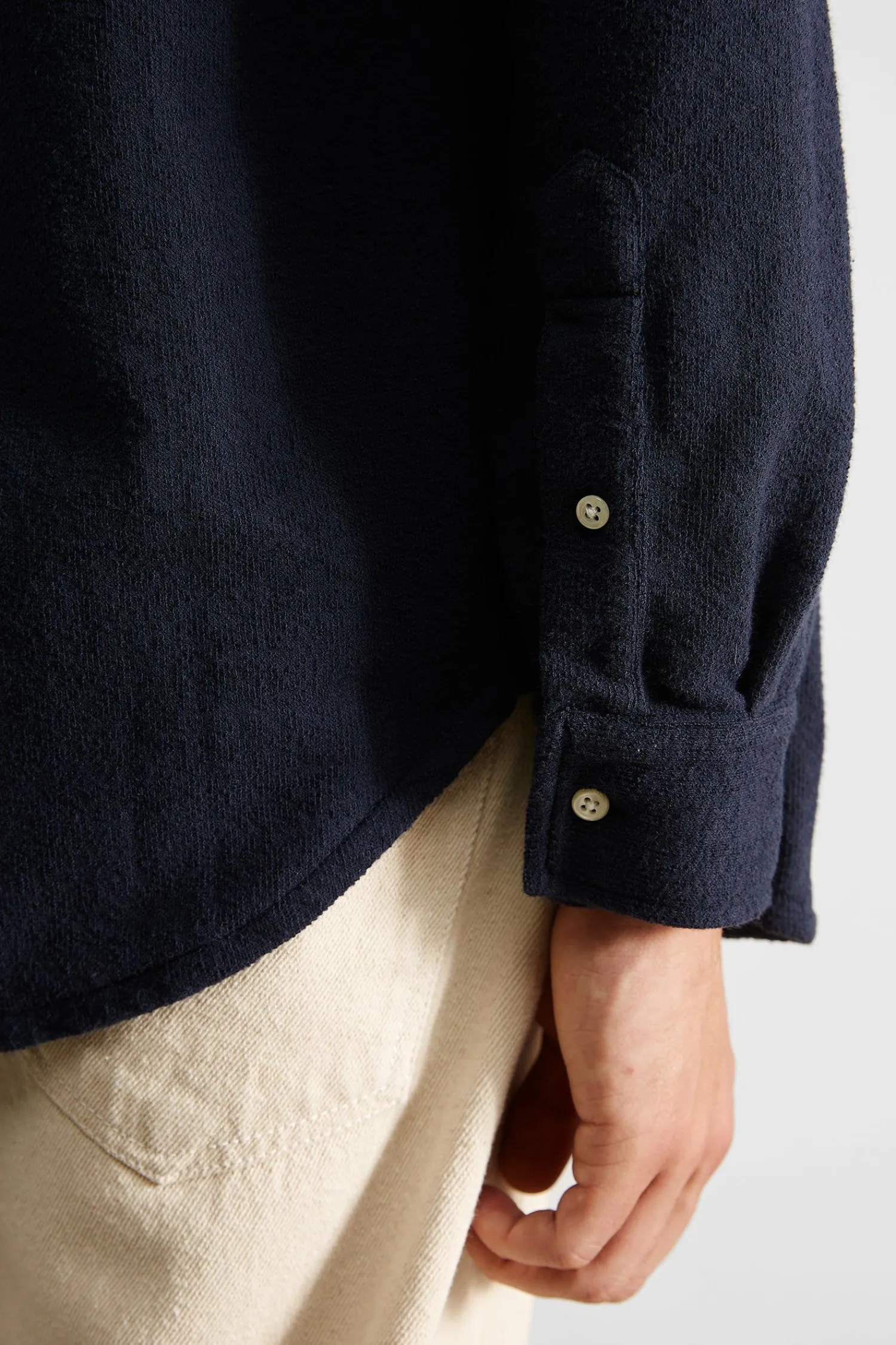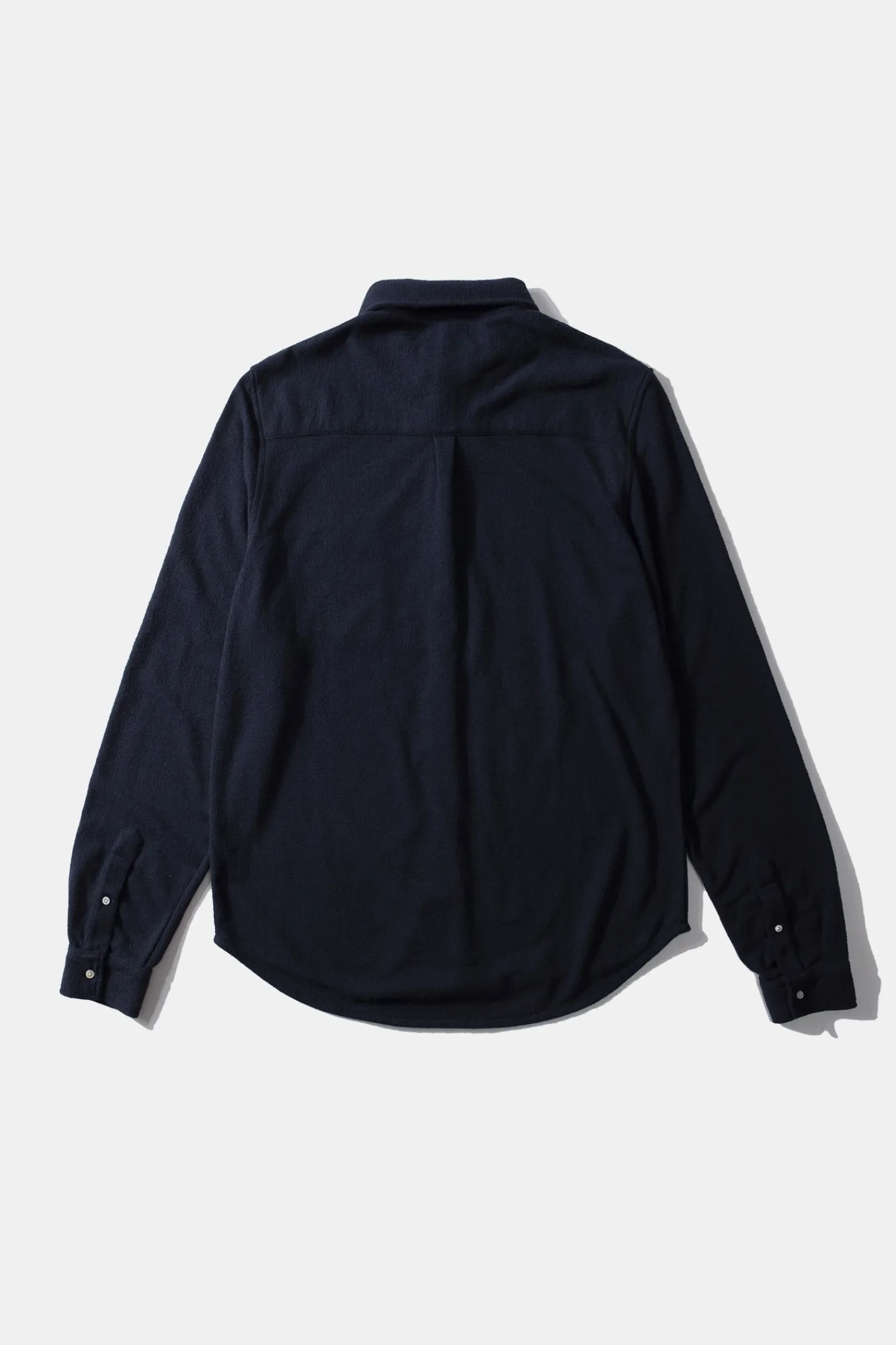 Camisa Lisa Azul Marino, Confeccionada En Tejido Modal, Comoda, Ligera Y Suave Al Tacto. Tiene Un Cuello Estilo Italiano Con Varios Botones Para Ajustar La Camisa Al Cuello.