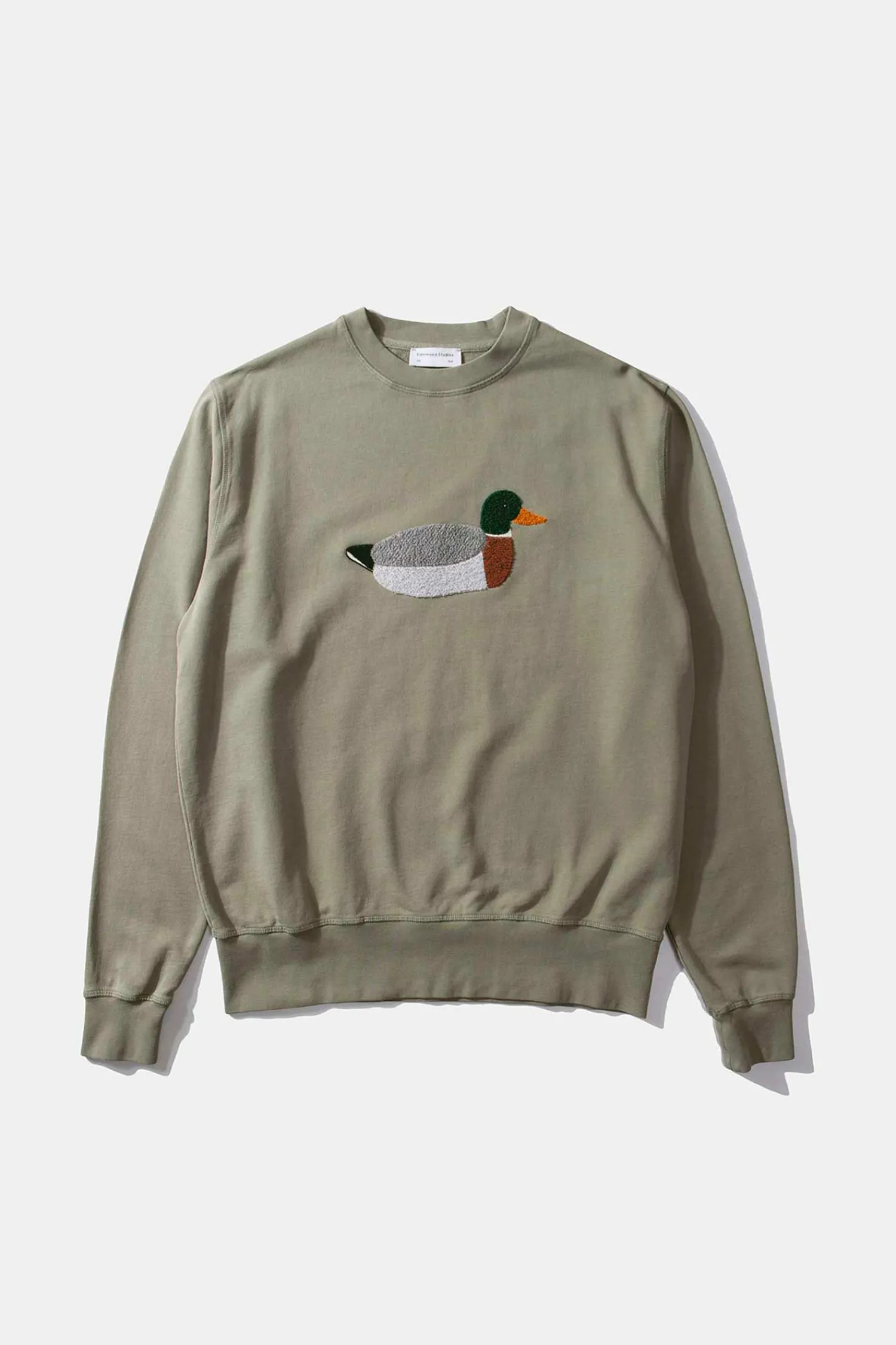 Sudadera Verde Oliva Clasica. Hecha De 100% Algodon. Punos Y Dobladillo Acanalados. Acabada Con Nuestro Iconico Logotipo De Pato Bordado En El Frente.
