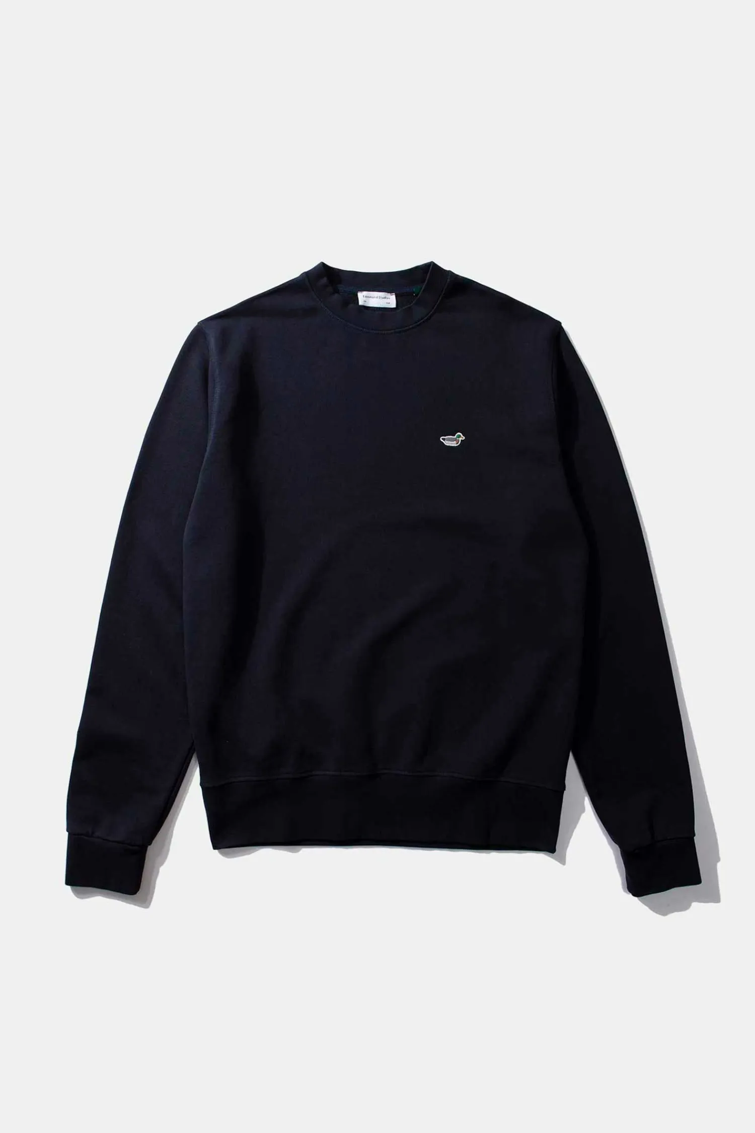 Sudadera Clasica Azul Marino De Cuello Redondo. Confeccionada En 100% Algodon Organico. Con Cuello, Punos Y Bajo De Canale. Se Completa Con Nuestro Iconico Logo De Pato Bordado En El Pecho.