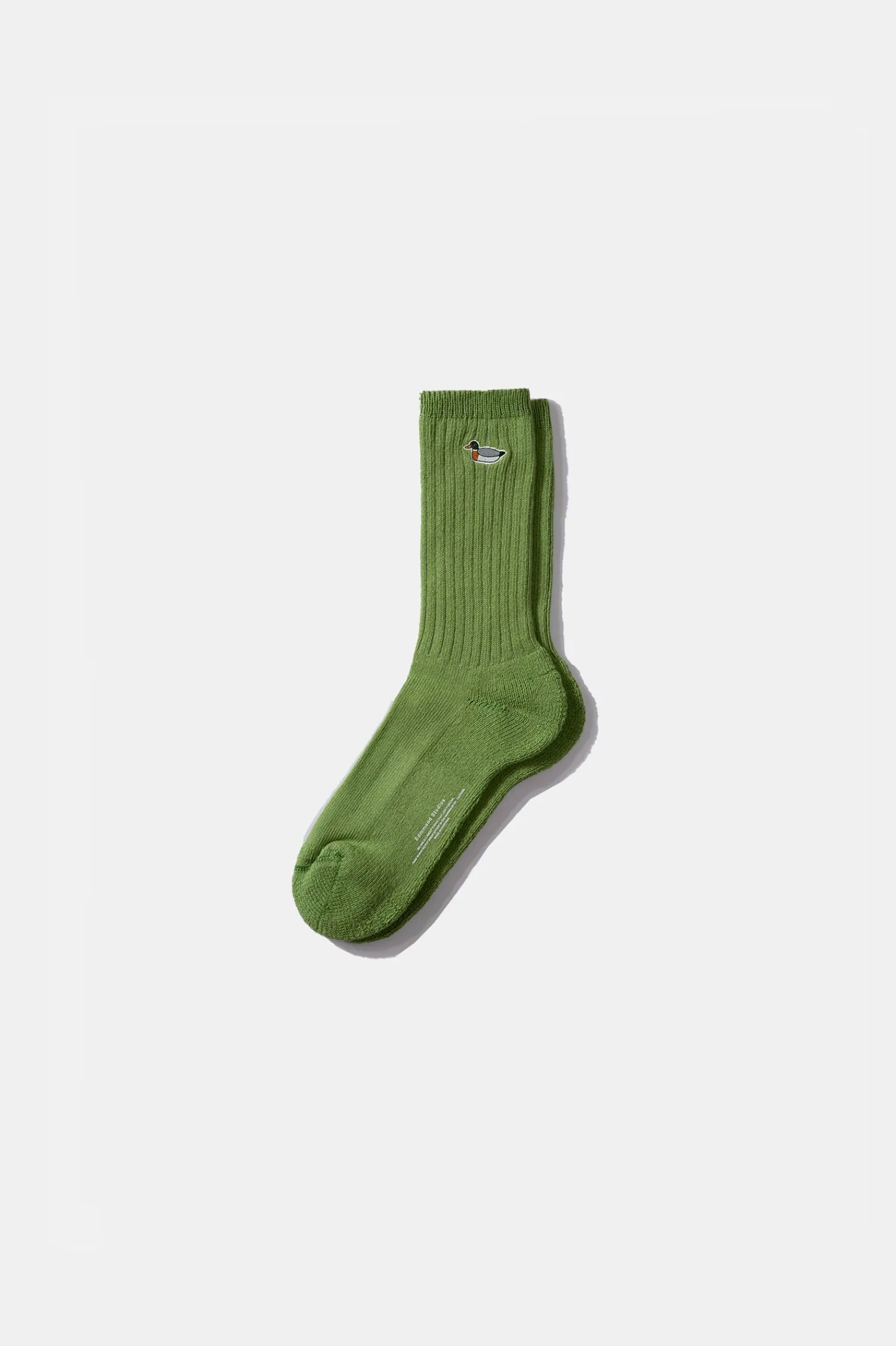 Calcetines De Algodon De Color Verde. Con Un Ligero Soporte Elastico Y Completados Con El Logotipo Del Pato Bordado.