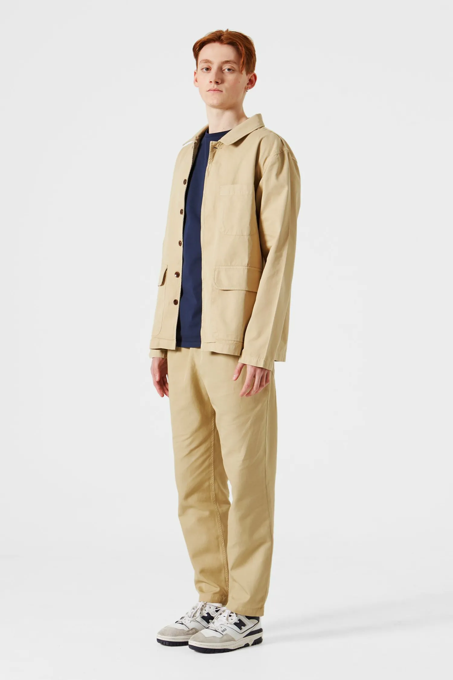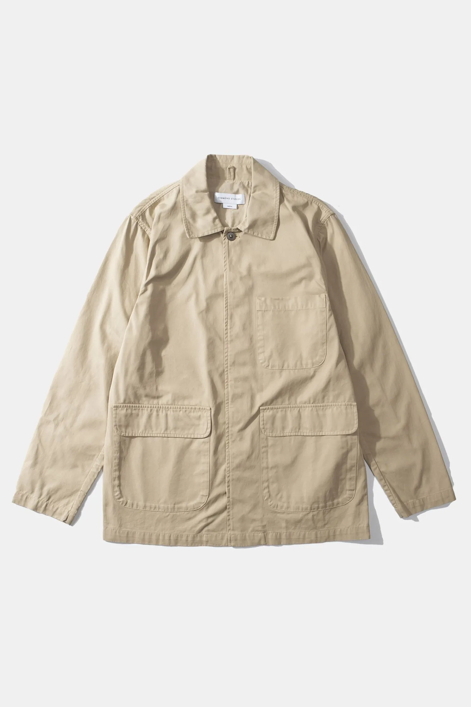 Chaqueta Color Beige Arena Fabricada De 100% Algodon. Es Resistente Y Cuenta Con Tres Bolsillos Delanteros.