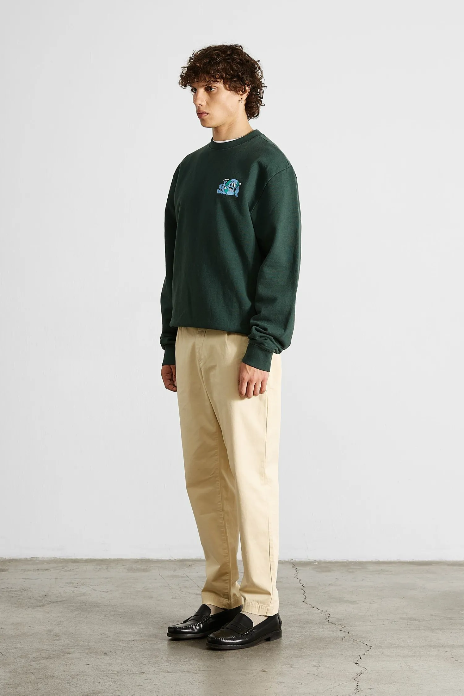 Sudadera Lisa De Cuello Redondo En Color Verde. Confeccionada Con 100% Algodon Organico. Ilustracion En La Parte Delantera Y Trasera.