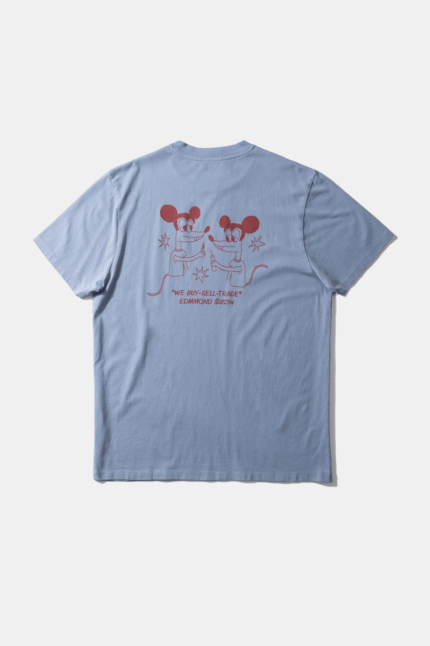 Camiseta Manga Corta Azul Acero. Confeccionada Con 100% Algodon Organico. Ilustracion En La Parte Delantera Y Trasera.