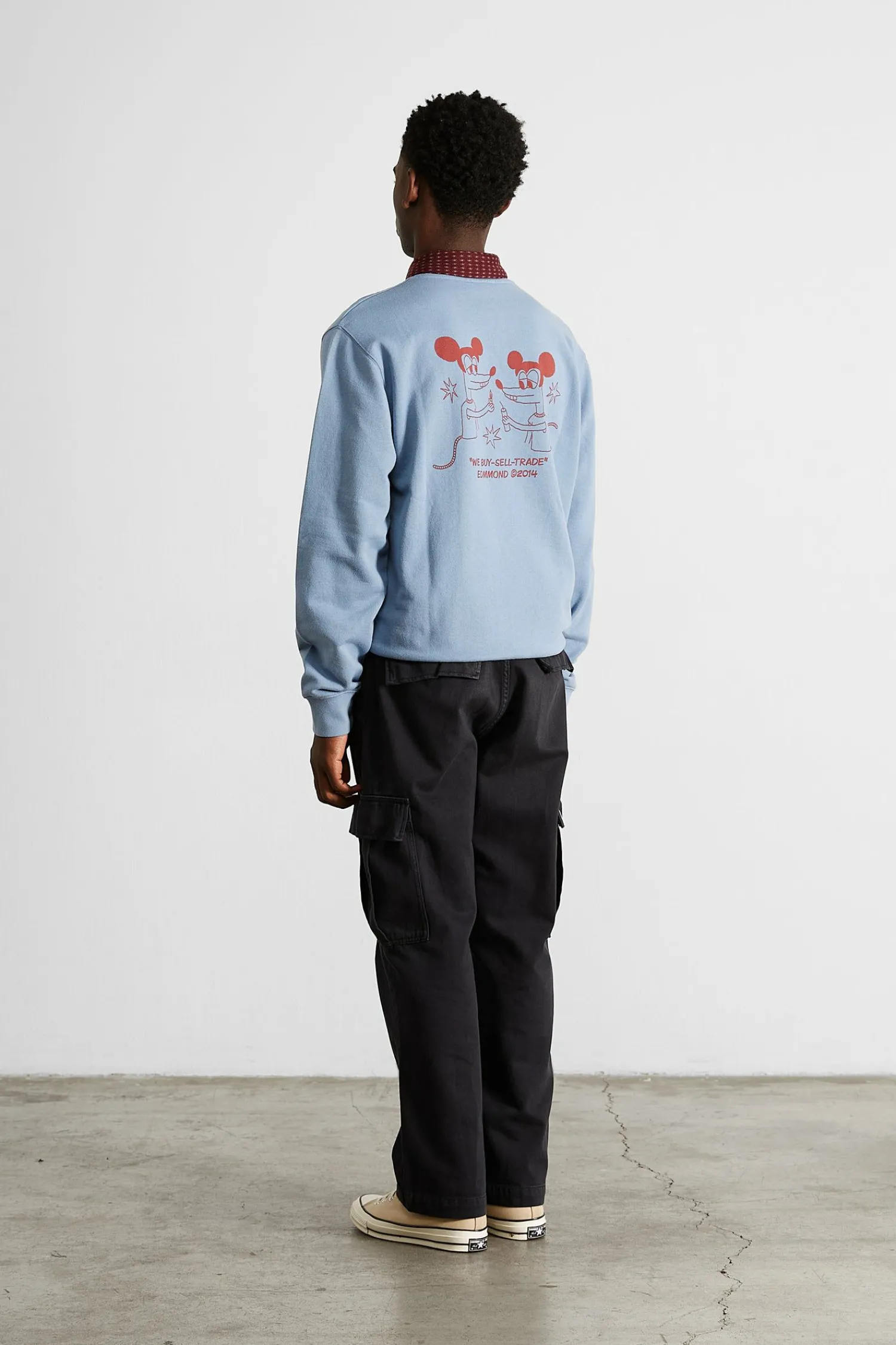 Sudadera Clasica De Color Azul Acero Con Silueta Holgada Confeccionada En Punto Grueso De Felpa De Algodon. Punos Y Dobladillo Acanalados. Ilustracion En La Parte Delantera Y Trasera.