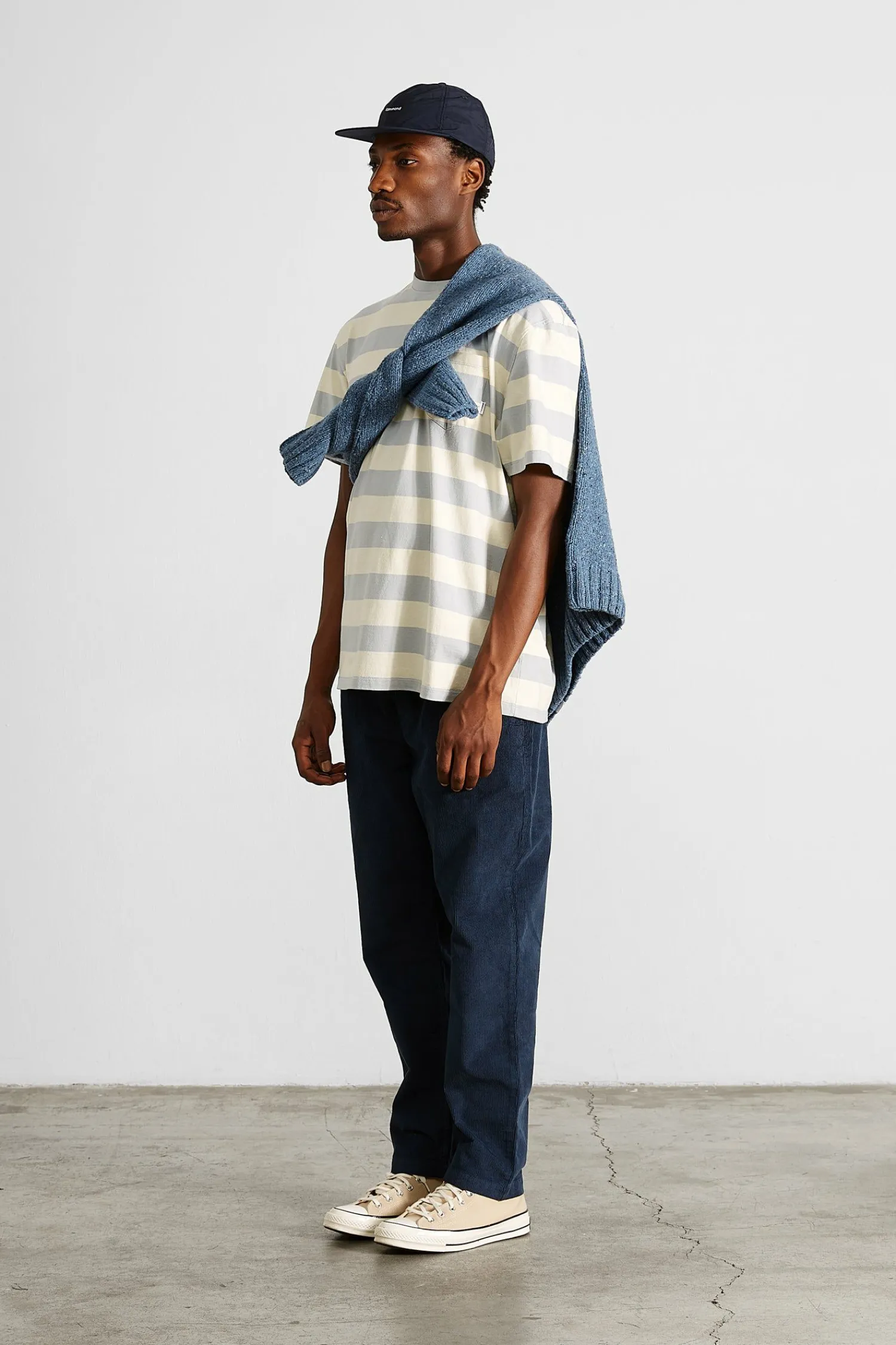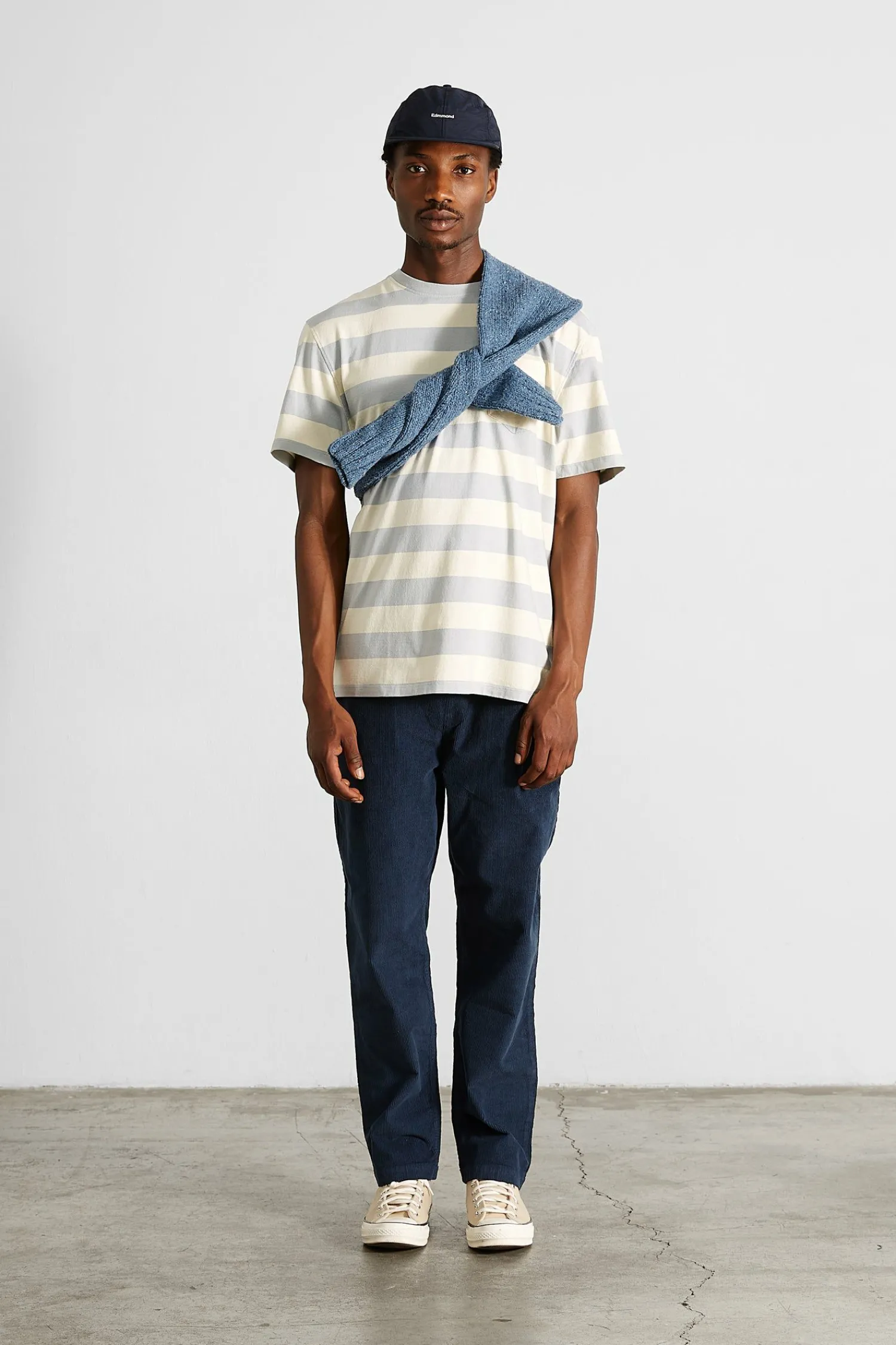 Camiseta De Manga Corta. Rayas Azules Y Gris Liso. Bolsillo En El Lado Izquierdo Del Pecho.El Modelo Mide 185 Cm Y Lleva…