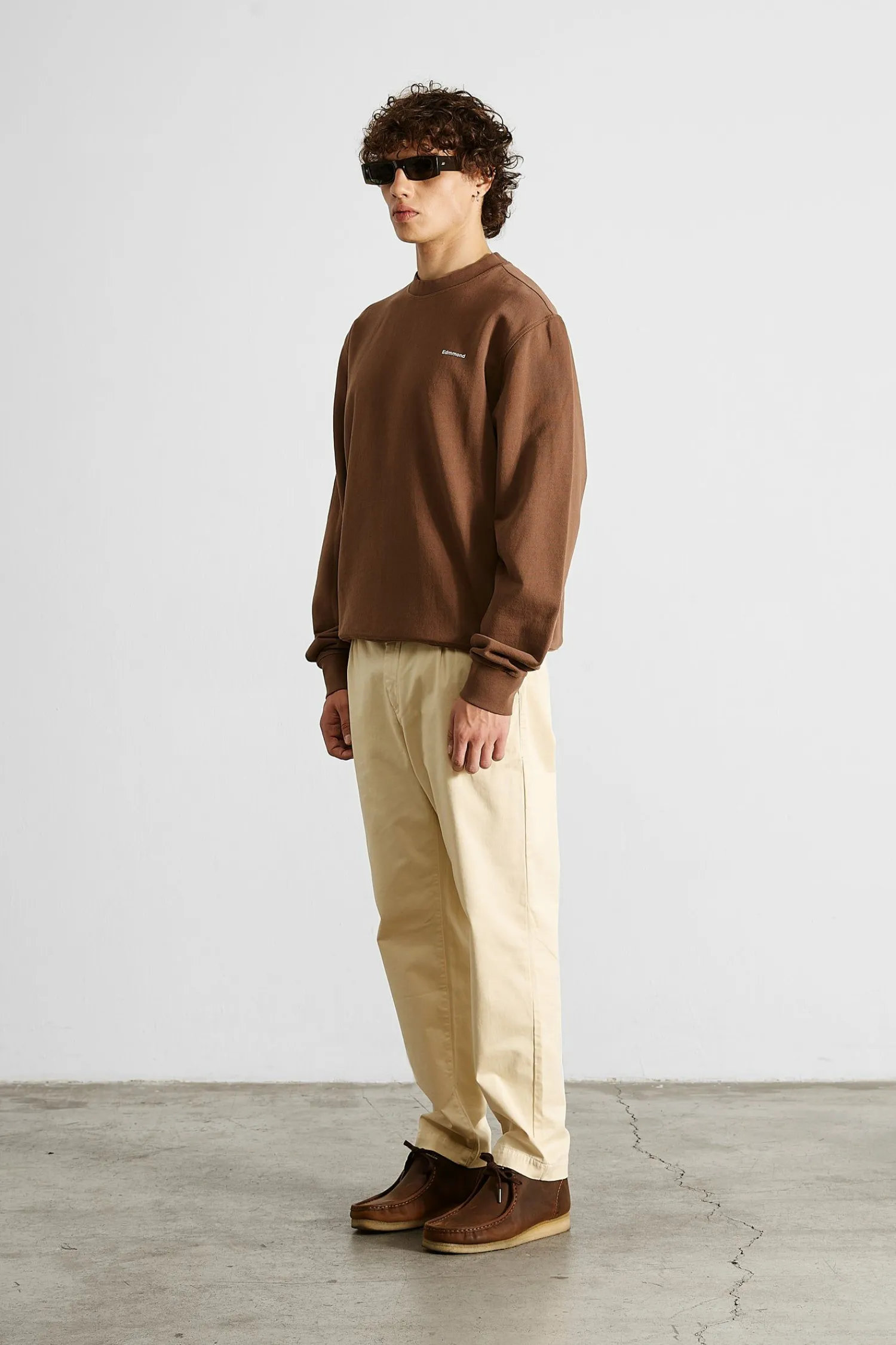Sudadera Lisa De Color Marron Confeccionada En Punto Grueso De Felpa De Algodon. Punos Y Dobladillo Acanalados. Con El Logo En Un Lateral Del Pecho.