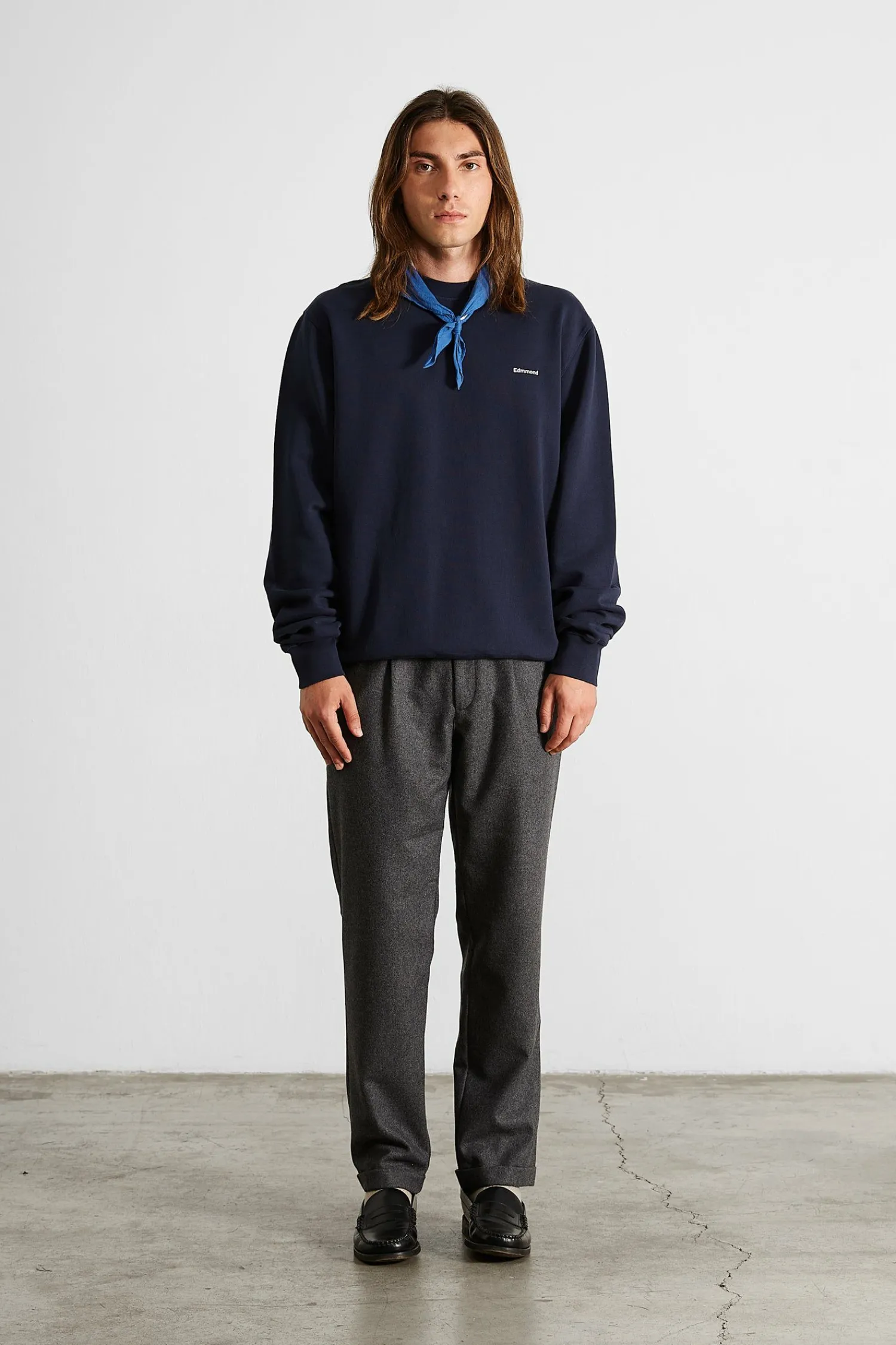 Sudadera Lisa De Color Azul Marino Confeccionada En Punto Grueso De Felpa De Algodon. Punos Y Dobladillo Acanalados. Con El Logo En Un Lateral Del Pecho.