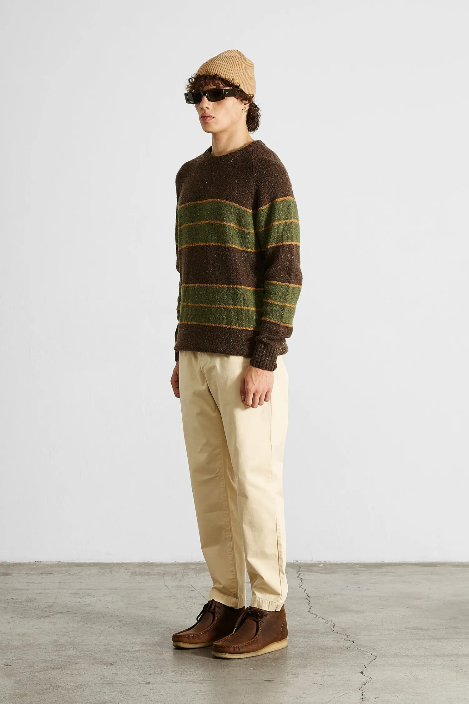 Jersey Multi Rayas En Color Marron, Cuello Redondo, Con Acabado En Tejido De Canale. Confeccionado 100% En Lana, Un Basico Para El Invierno.