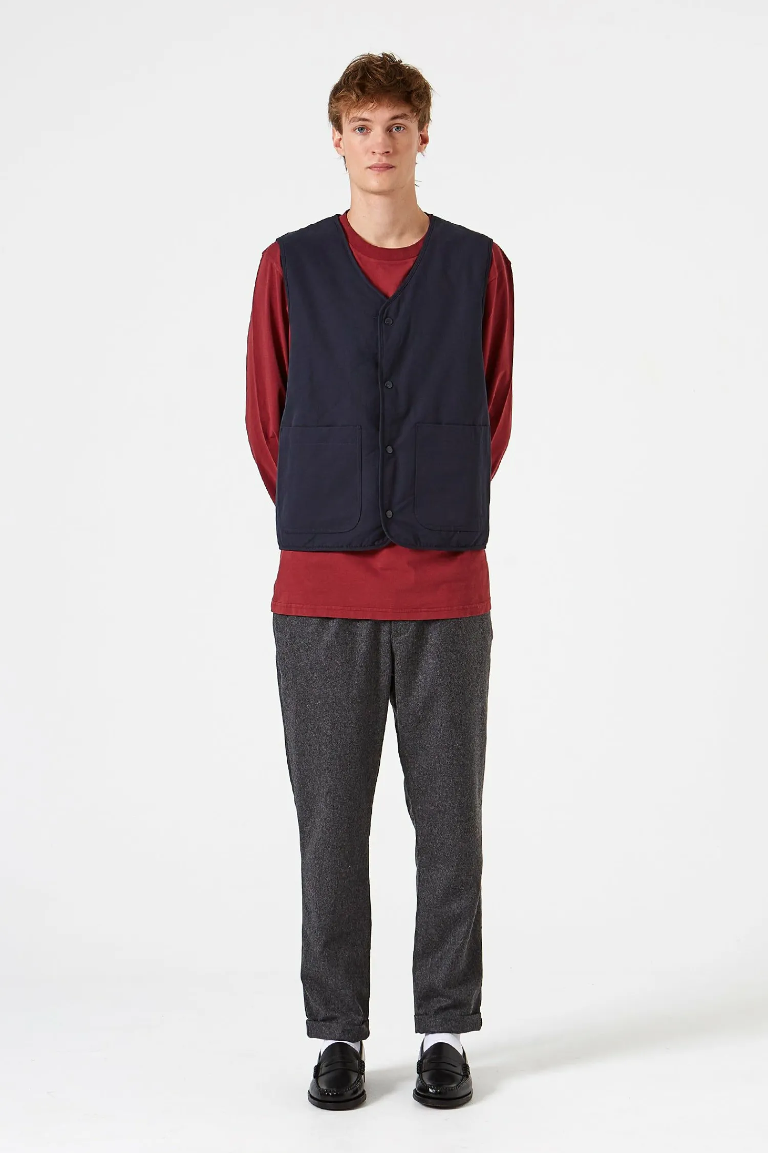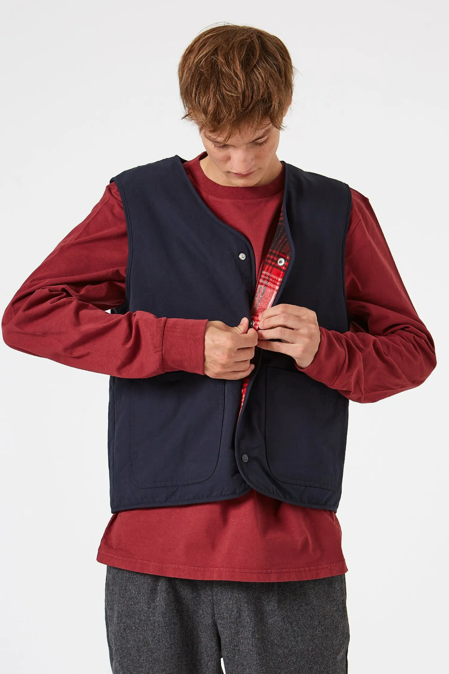 Chaleco Reversible En Color Azul Marino. Cuenta Con Un Interior De Lana Y Un Cierre Con Botones. Se Completa Con Dos Bolsillos Interiores Y Dos Bolsillos Exteriores De Parche.