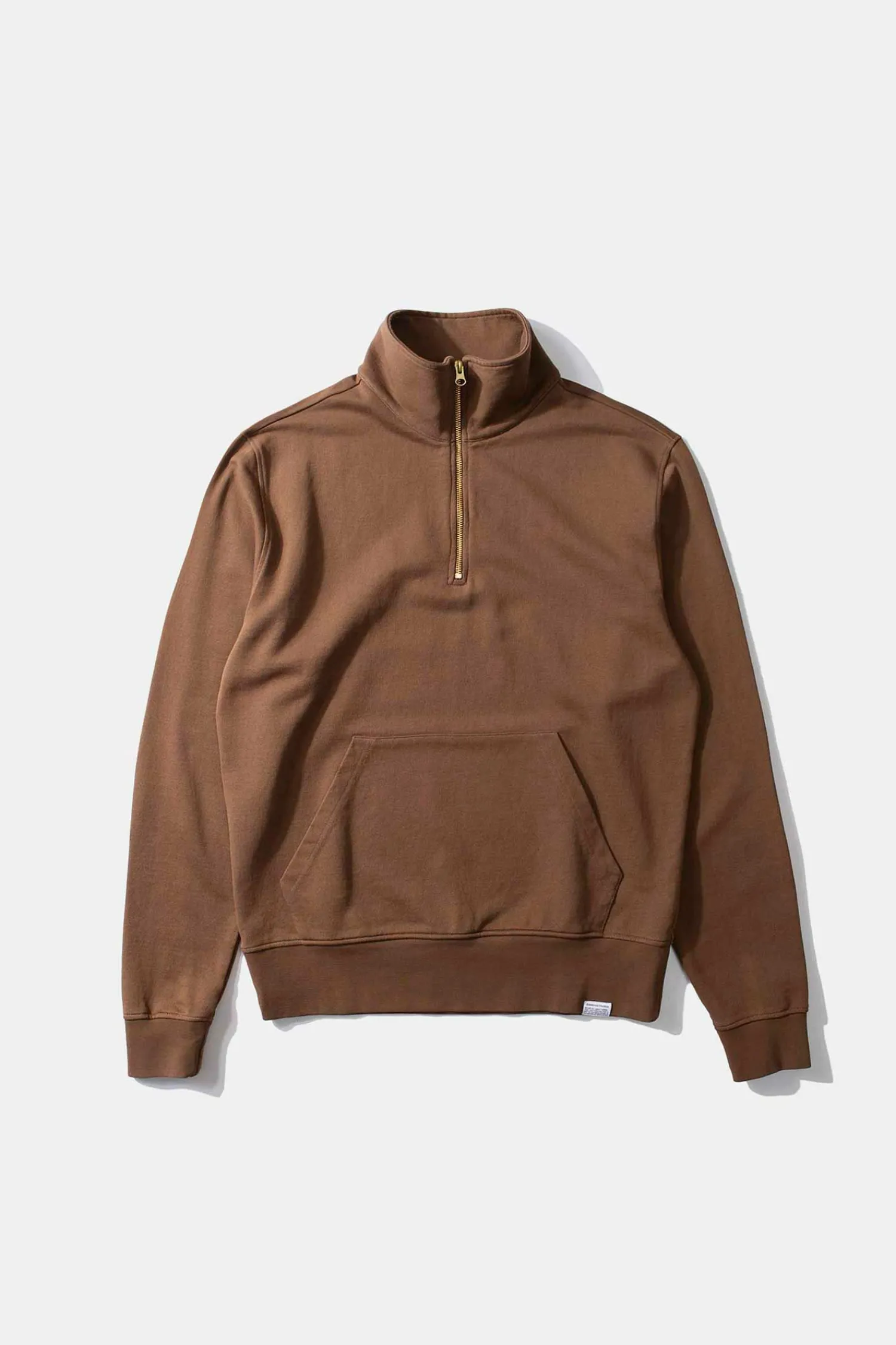 Sudadera Lisa En Color Marron. Confeccionada Con Algodon 100% Organico De 320Gr. Pequena Cremallera Que Llega Al Pecho Y Punos Y Bajo De Canale. Con Un Bolsillo En La Parte Inferior.