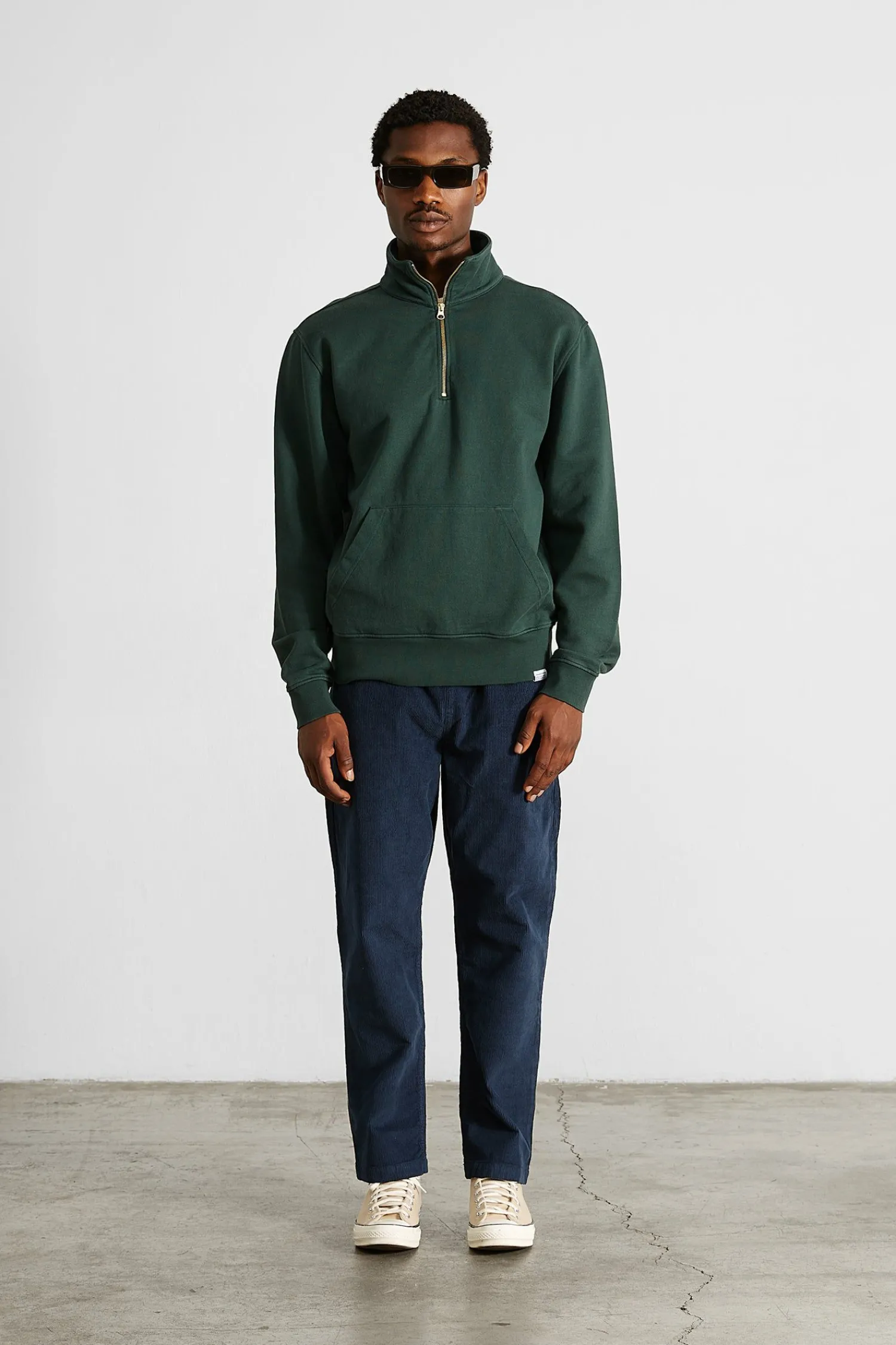 Sudadera Verde Lisa. Confeccionada Con Algodon 100% Organico De 320Gr. Pequena Cremallera Que Llega Al Pecho Y Punos Y Bajo De Canale. Con Un Bolsillo En La Parte Inferior.