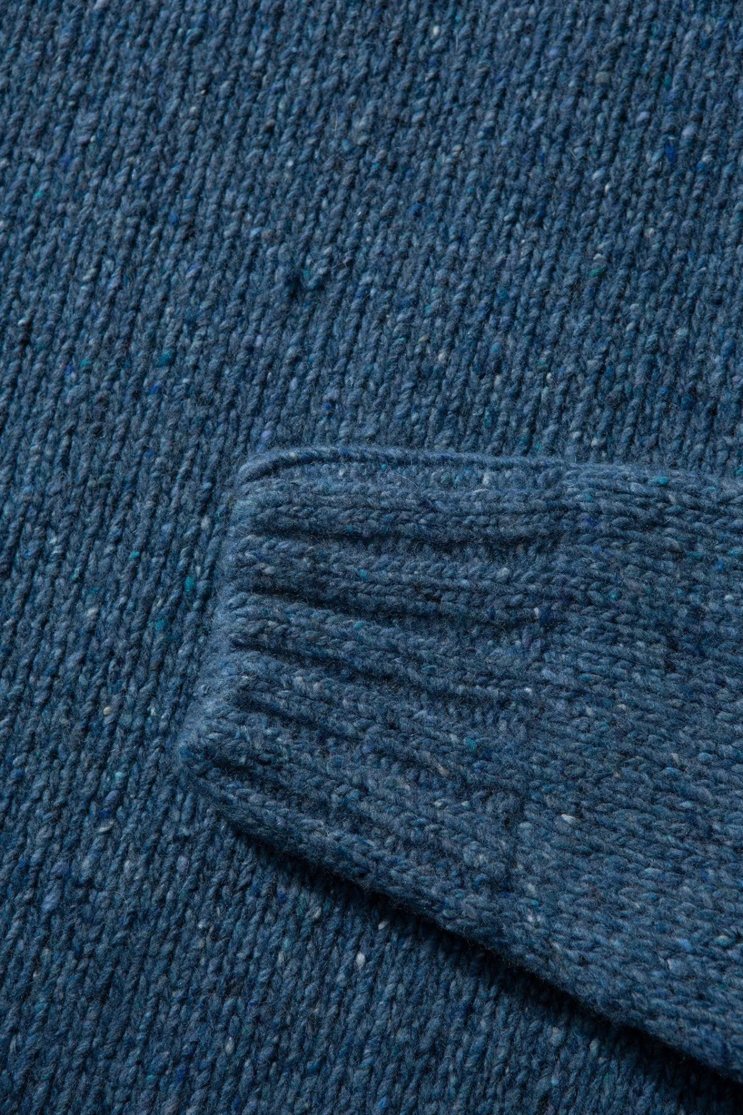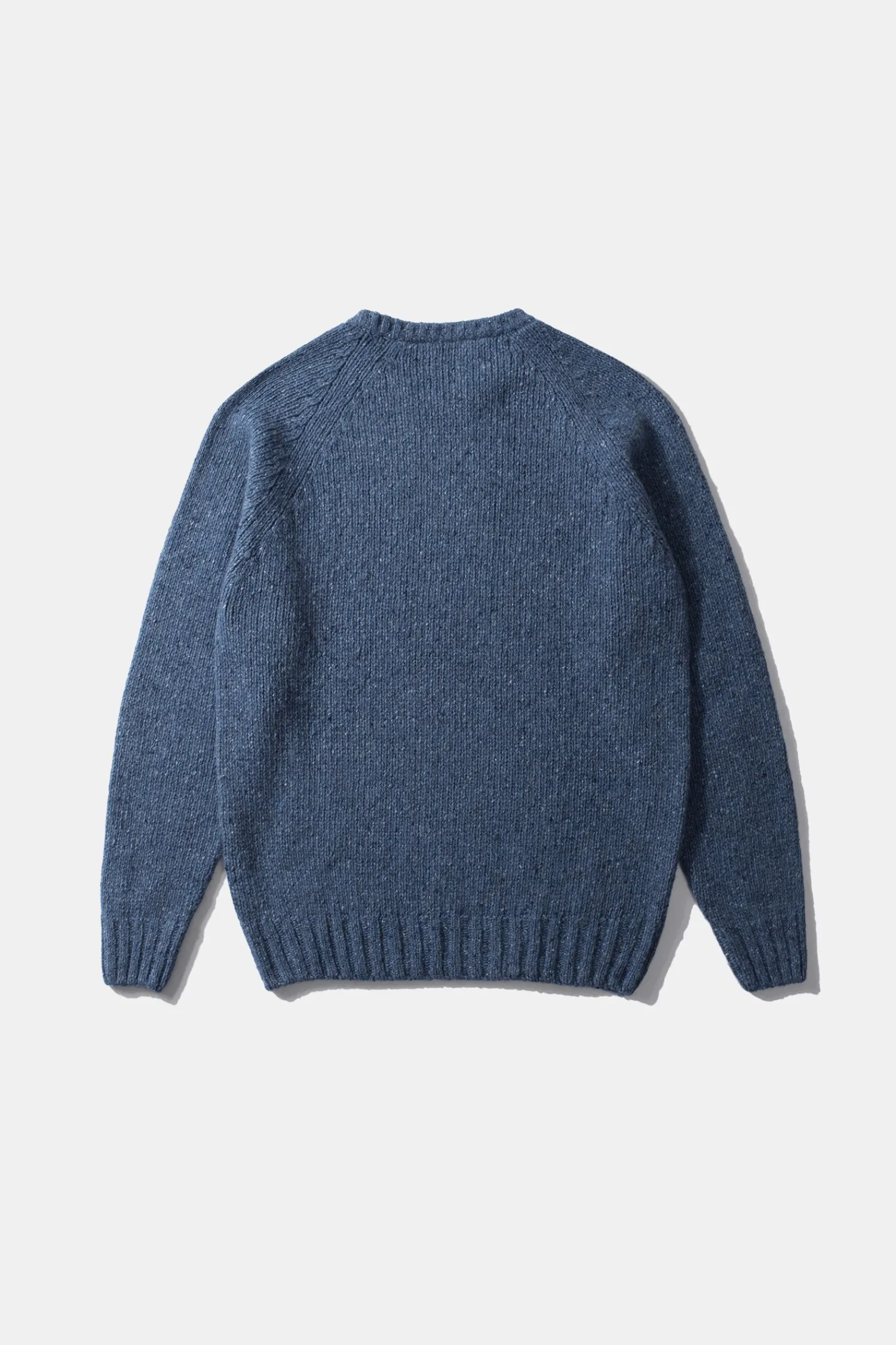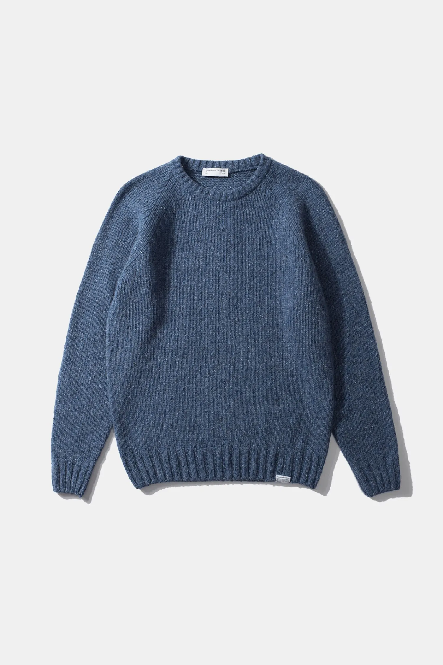 Jersey Clasico De Color Azul Acero, Cuello Redondo, Con Acabado En Tejido Canale. Fabricado Con Hilatura Tweed.
