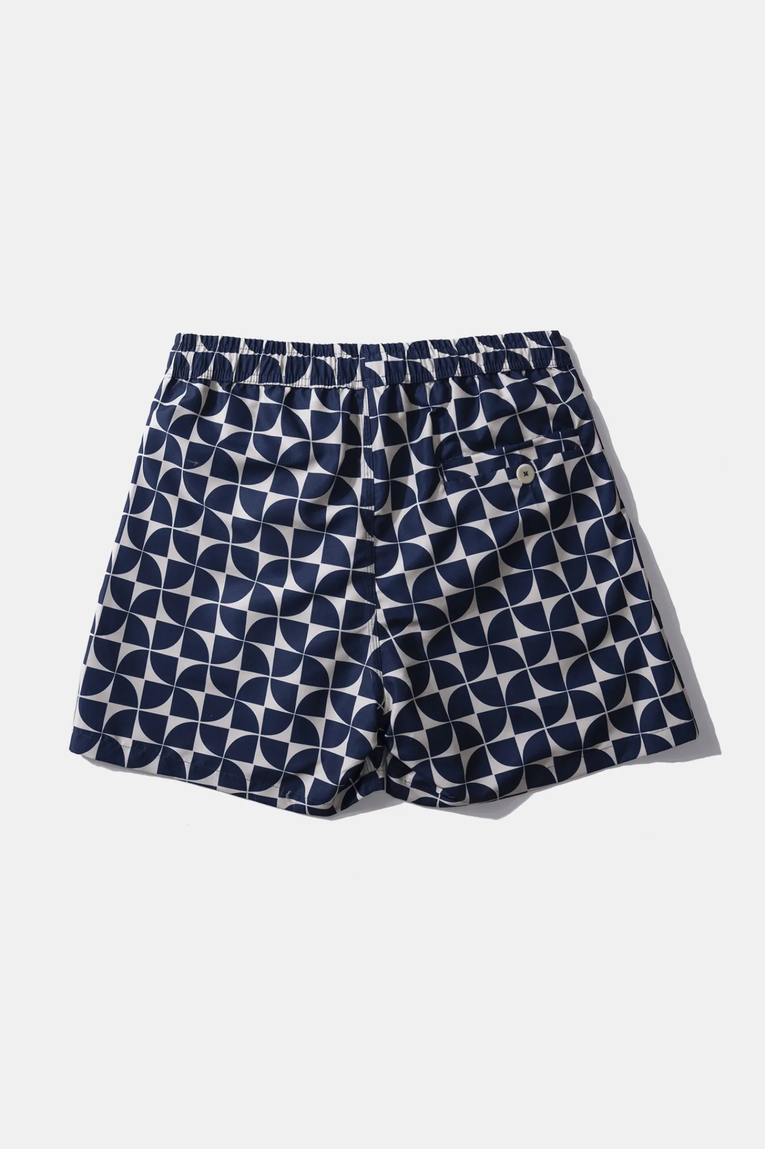 Banador Azul Marino Con Cintura Elastica Y Cordon Ajustable. El Estampado Ha Sido Disenado En El Estudio Creativo De Madrid Y Fabricado En Portugal.