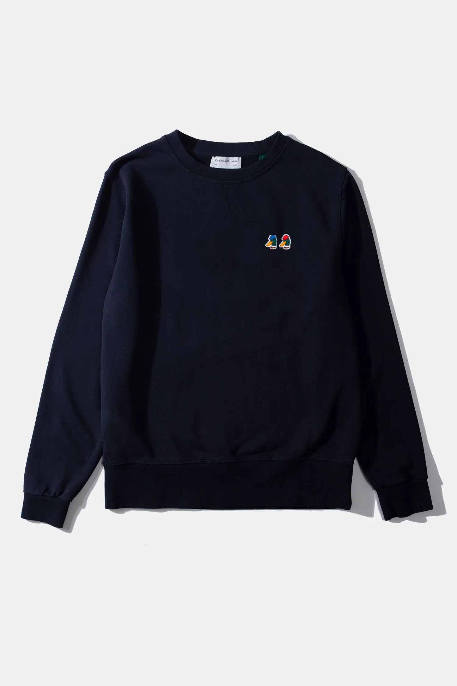 Una Sudadera Clasica Con Mangas Ajustadas Y Corte Regular. Esta Confeccionada En Algodon 100% Organico, Conocido Por Su Transpirabilidad Y Durabilidad. Tiene Un Dibujo De Dos Patos Juveniles En El Pecho Izquierdo. Fabricada En Portugal.
