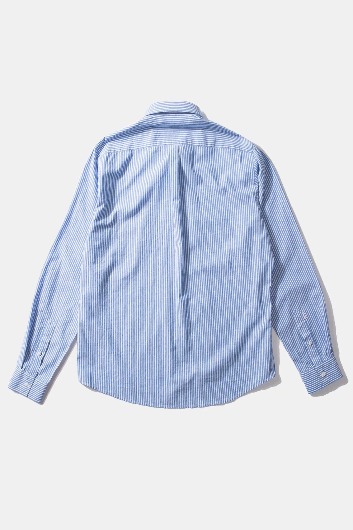 Camisa De Rayas Finas Con Botones, Cuello Abotonado Y Punos Redondos. Corte Recto. Fabricada En Algodon Organico.