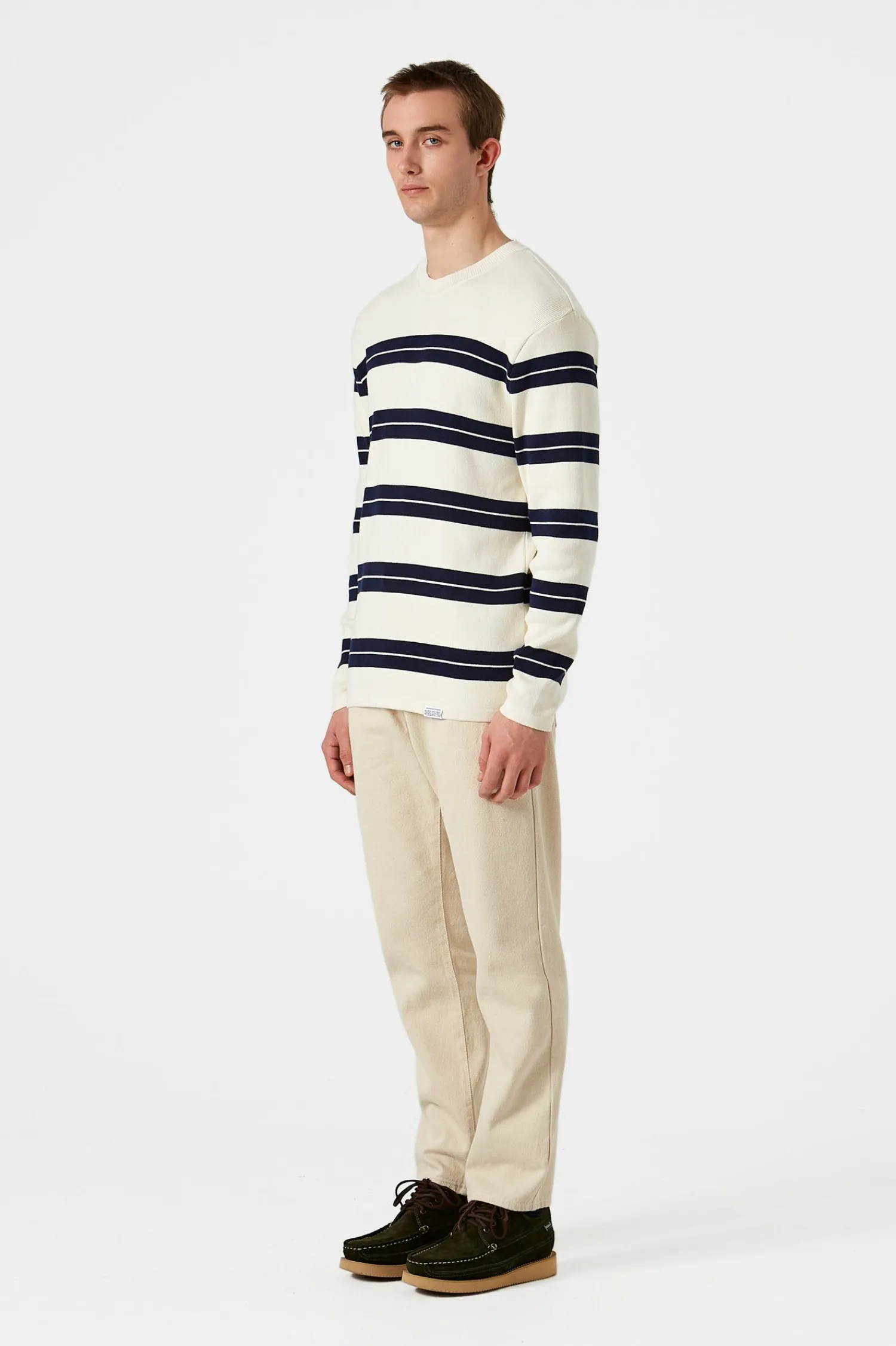 Hombre Edmmond Studios Striped Sweater Plain Beige