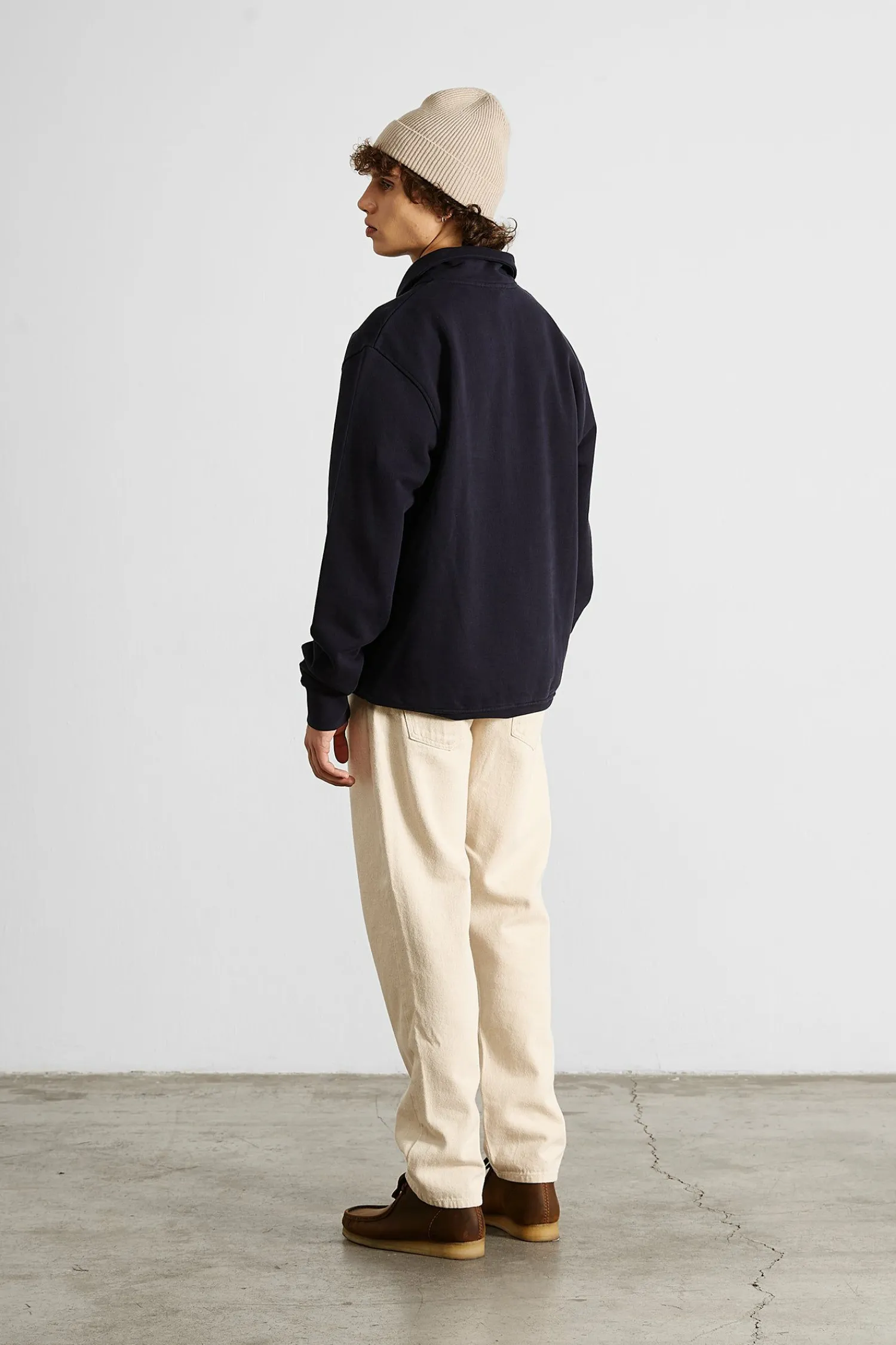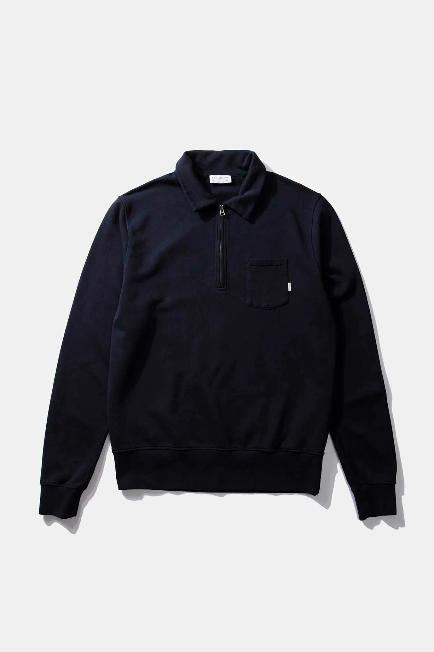 Sudadera Lisa Azul Marino. Confeccionada Con Algodon 100% Organico De 320Gr. Canale Redondo, Cuello Con Solapa, Una Pequena Cremallera Que Llega Al Pecho Y Un Bolsillo En La Parte Superior Izquierda.