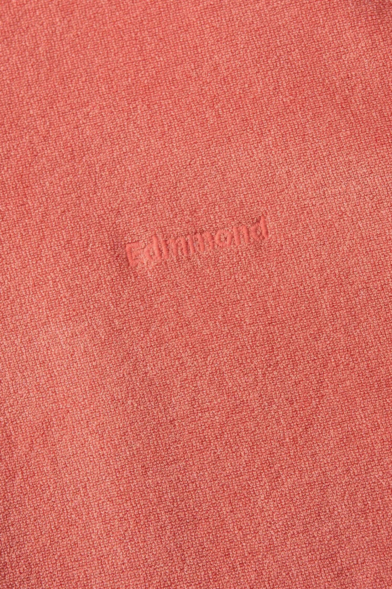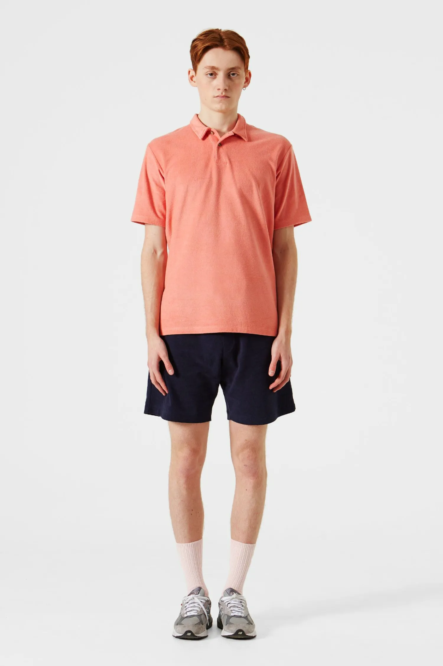 Polo De Color Salmon Rojo O Color Coral, De Tejido Modal, Comodo, Ligero Y Suave Al Tacto. Es De Manga Corta, Y Tiene Cuello De Estilo Italiano Con Varios Botones Para Poder Ajustar La Camisa Al Cuello.