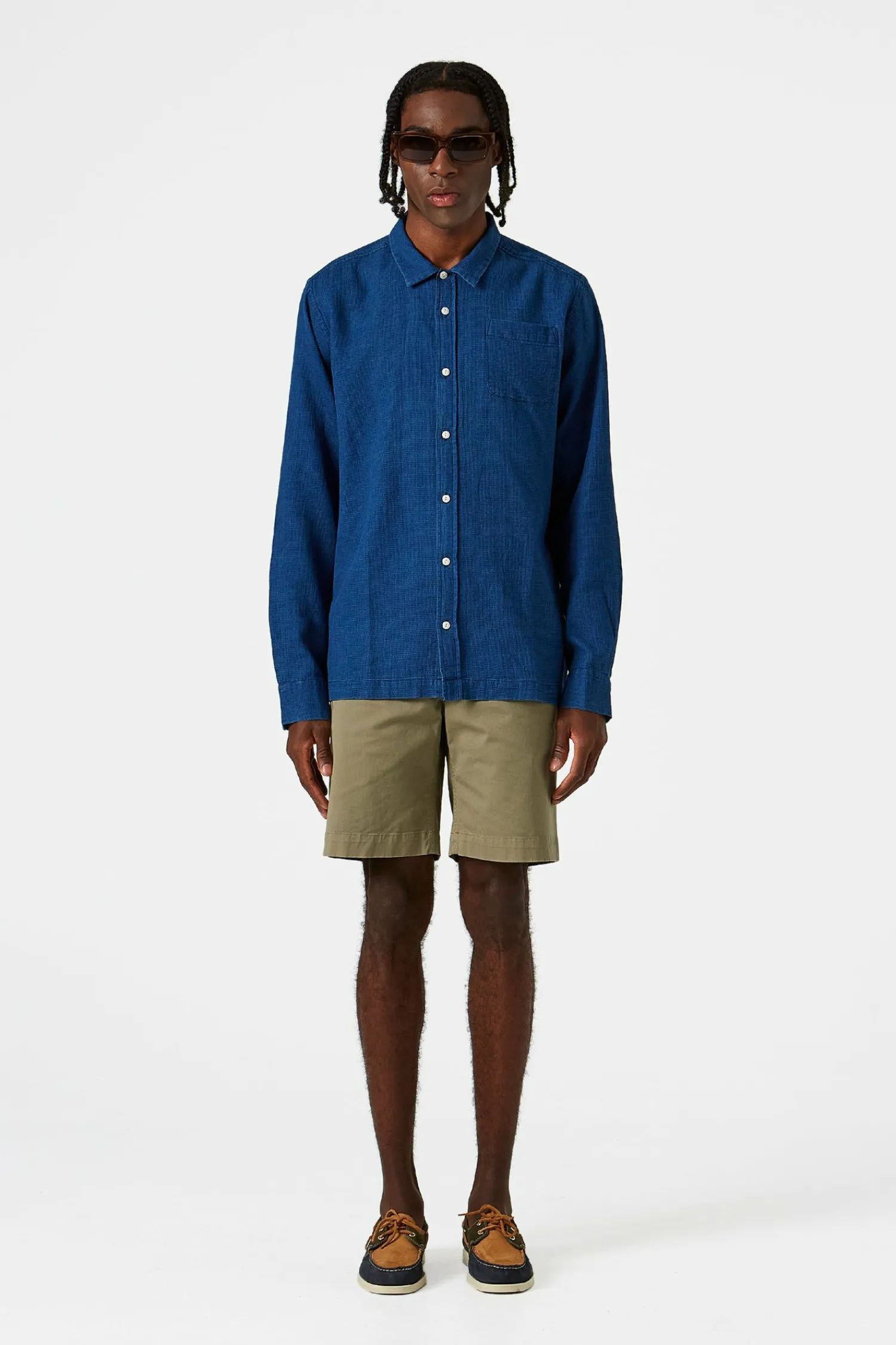 Camisa Con Botones, Un Bolsillo En El Pecho Y Punos Redondos. Corte Recto. Tejido Gofre. Corte Recto.