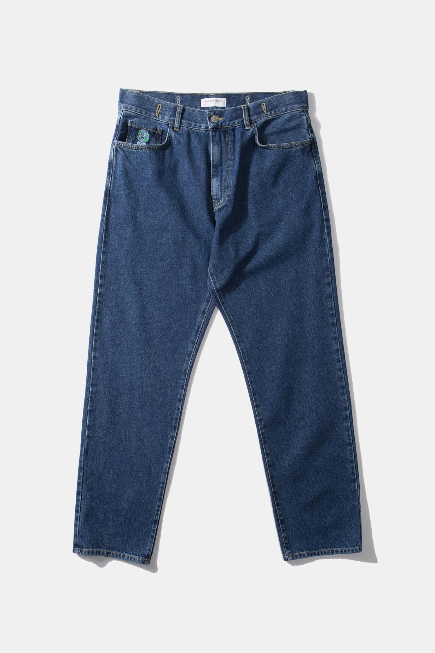 Pantalon Vaquero De Corte Regular. Con Ilustracion Bordada En El Bolsillo Derecho. Tiene Tres Bolsillos Delanteros Y Dos En La Parte Trasera. Puedes Encontrar Ojales En La Parte Del Cinturon. Terminado Con El Detalle De Etiqueta Edmmond En La Parte Trasera.