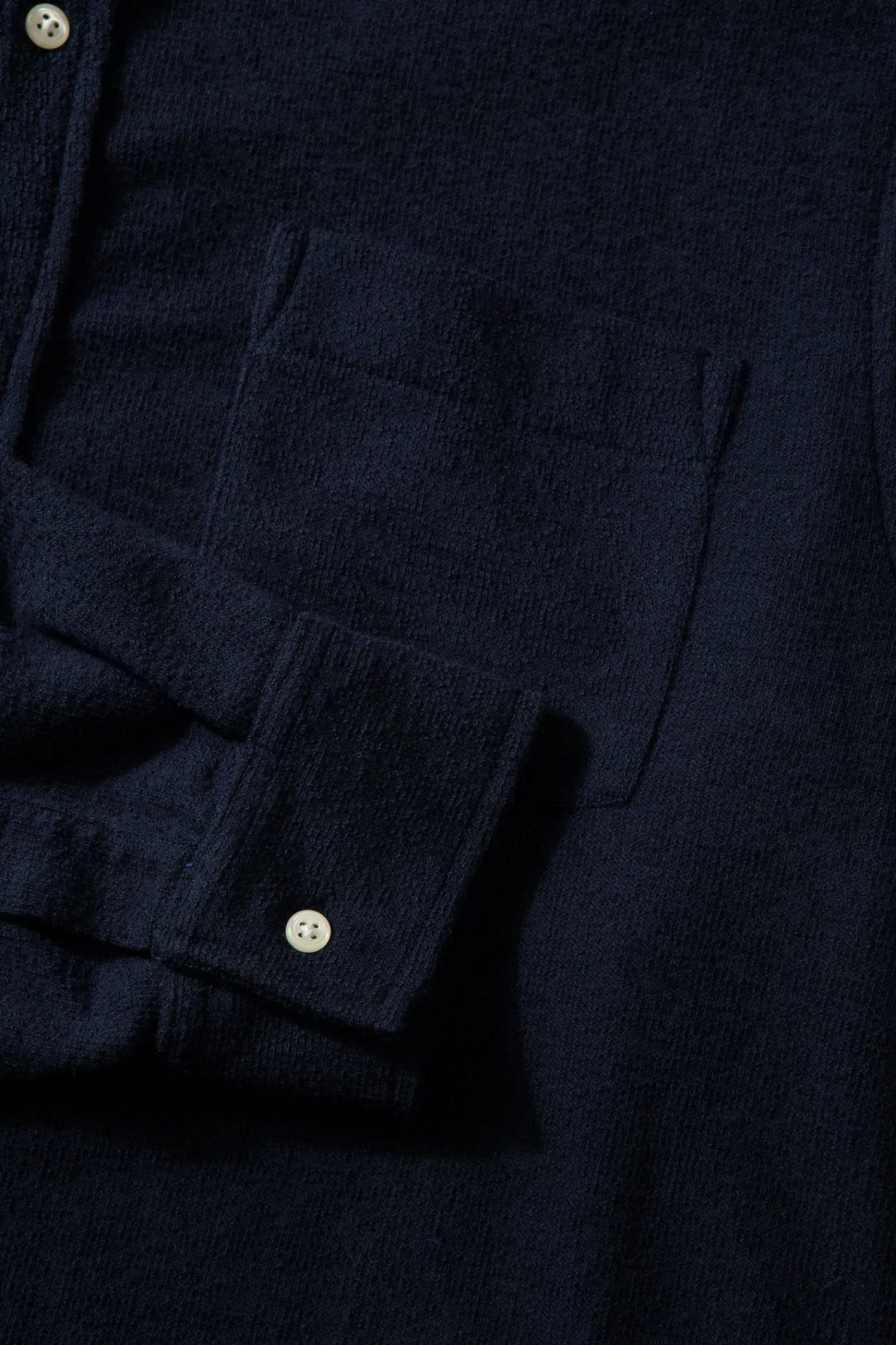 Camisa Lisa Azul Marino, Confeccionada En Tejido Modal, Comoda, Ligera Y Suave Al Tacto. Tiene Un Cuello Estilo Italiano Con Varios Botones Para Ajustar La Camisa Al Cuello.
