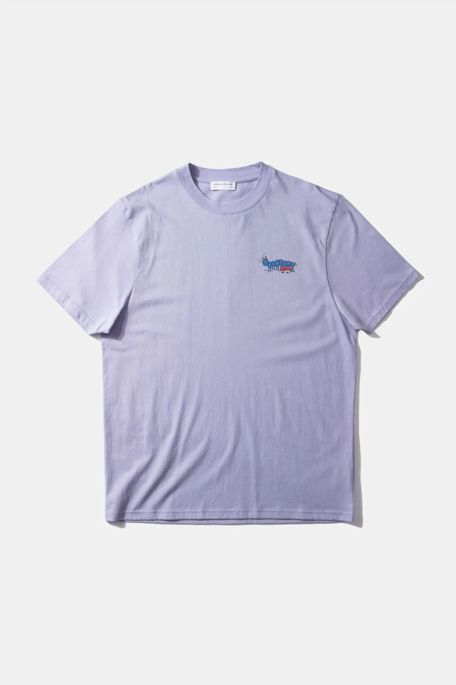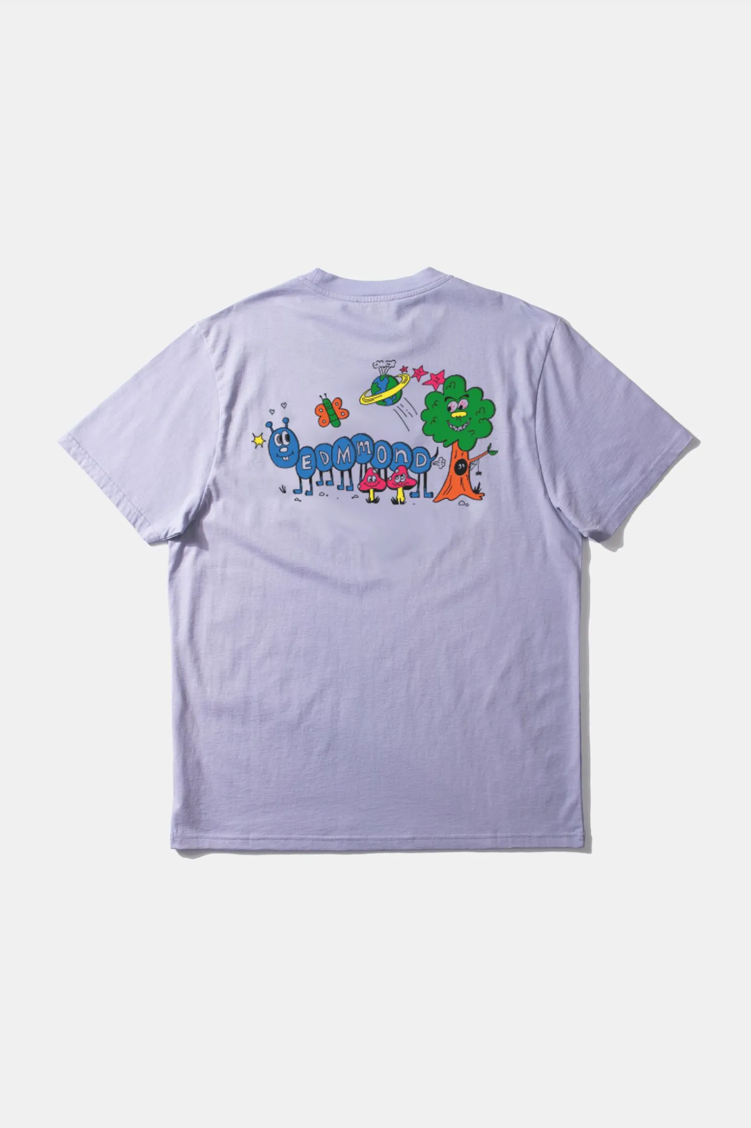 Camiseta De Manga Corta De Color Violeta Claro. Confeccionada Con 100% Algodon Organico. Ilustracion En La Parte Delantera Y Trasera.