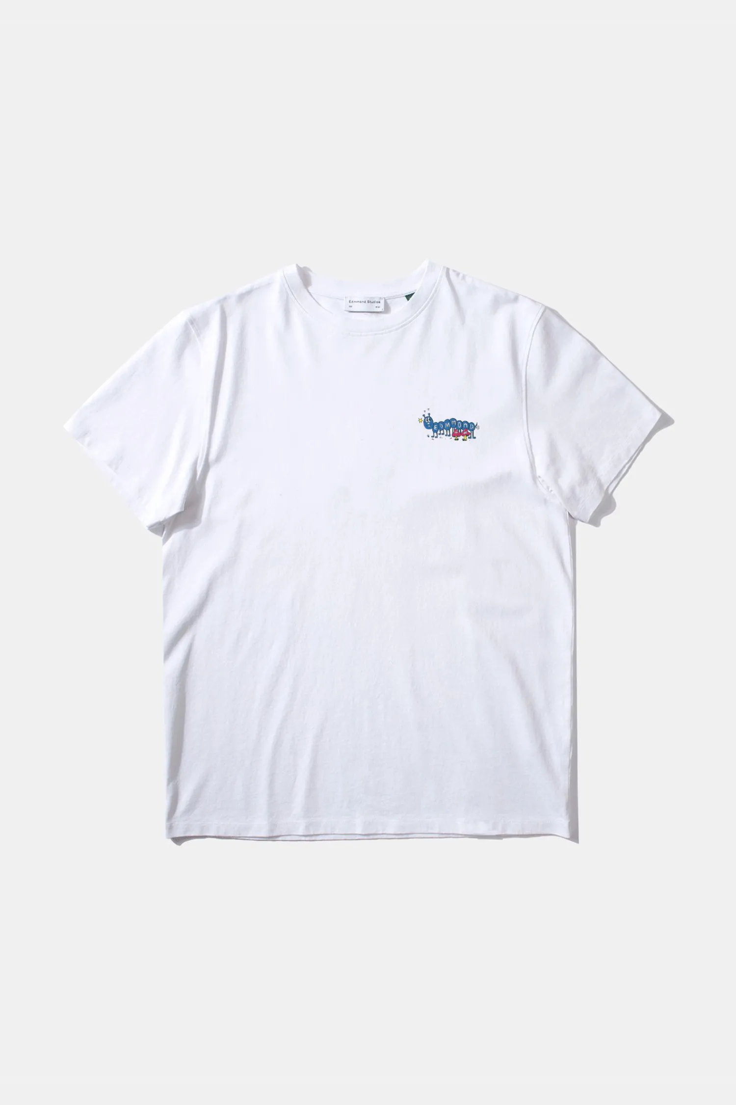 Camiseta Blanca De Manga Corta. Confeccionada Con 100% Algodon Organico. Ilustracion En La Parte Delantera Y Trasera.