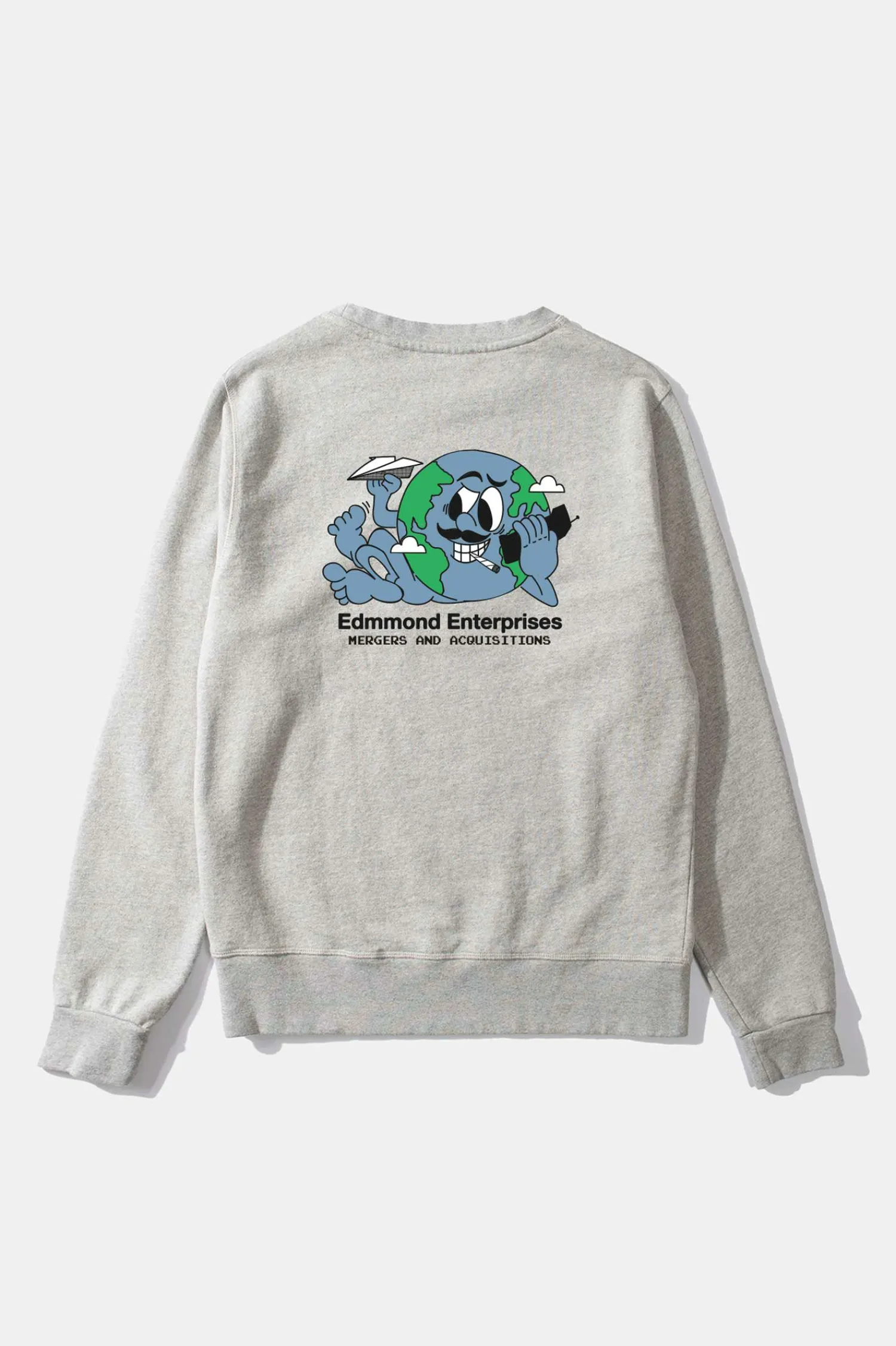 Sudadera Lisa De Cuello Redondo En Color Gris. Confeccionada Con 100% Algodon Organico. Ilustracion En La Parte Delantera Y Trasera.