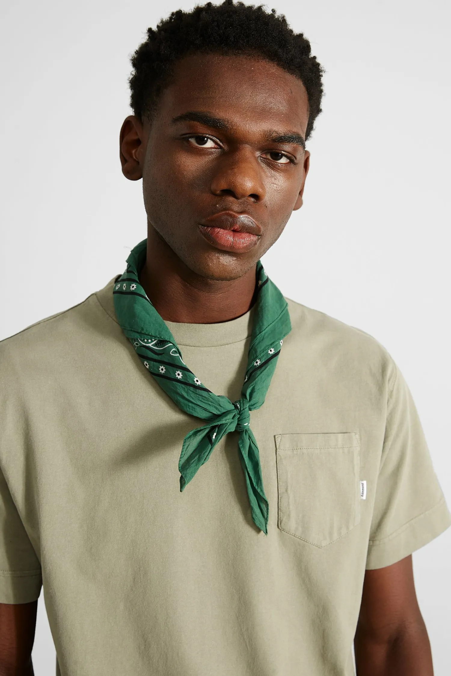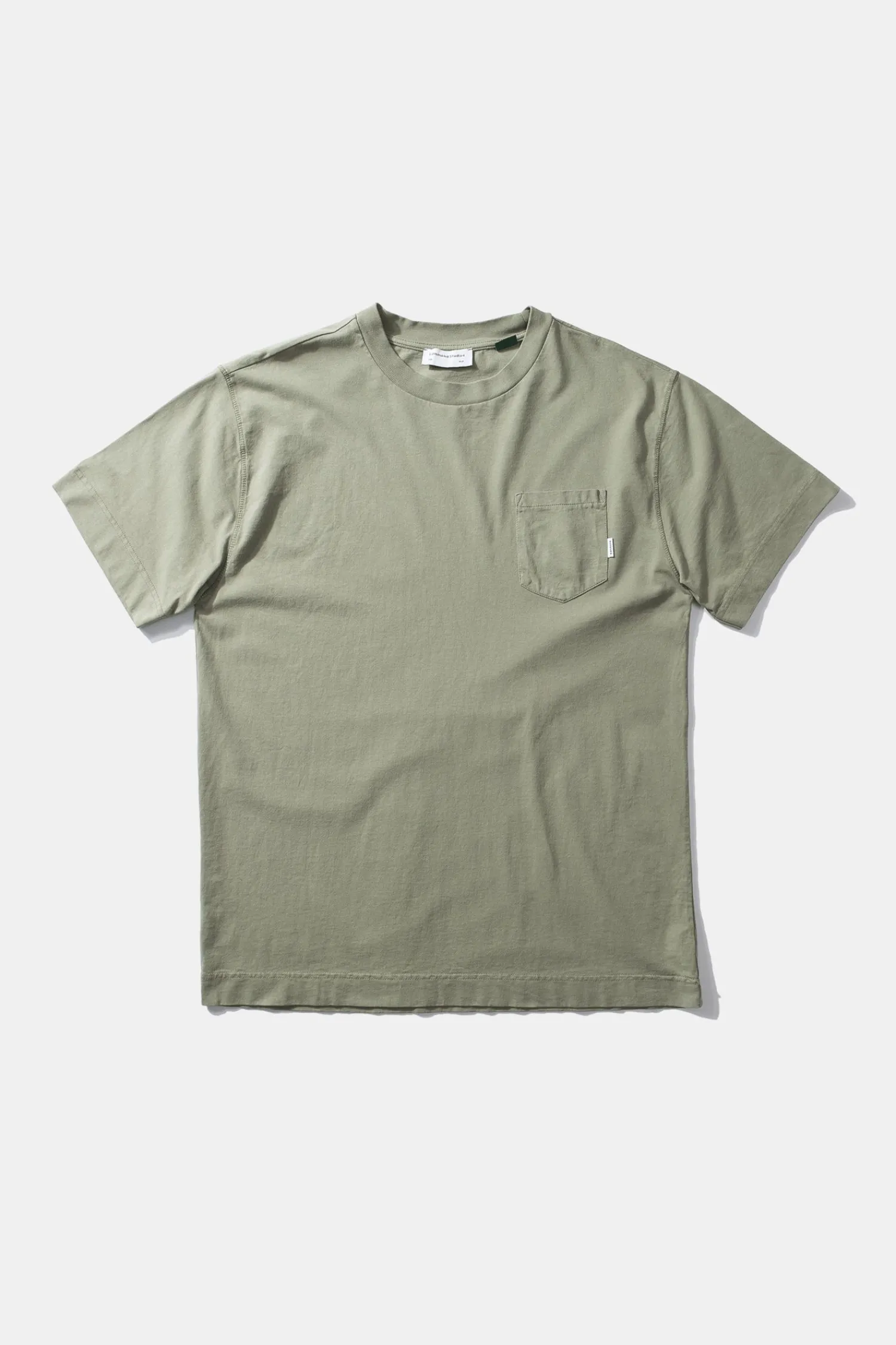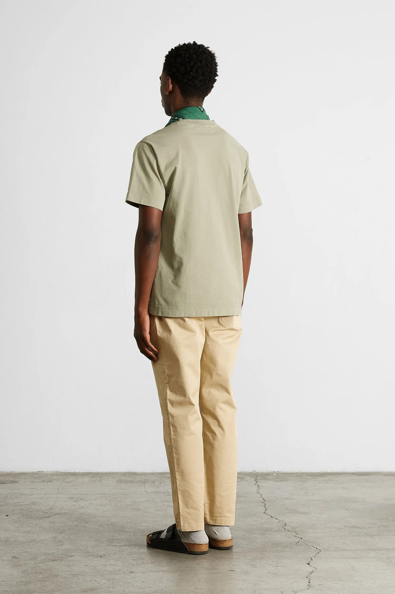 Camiseta Manga Corta Color Verde Oliva. Confeccionada Con 100% Algodon Organico. Bolsillo En El Lado Izquierdo Del Pecho.