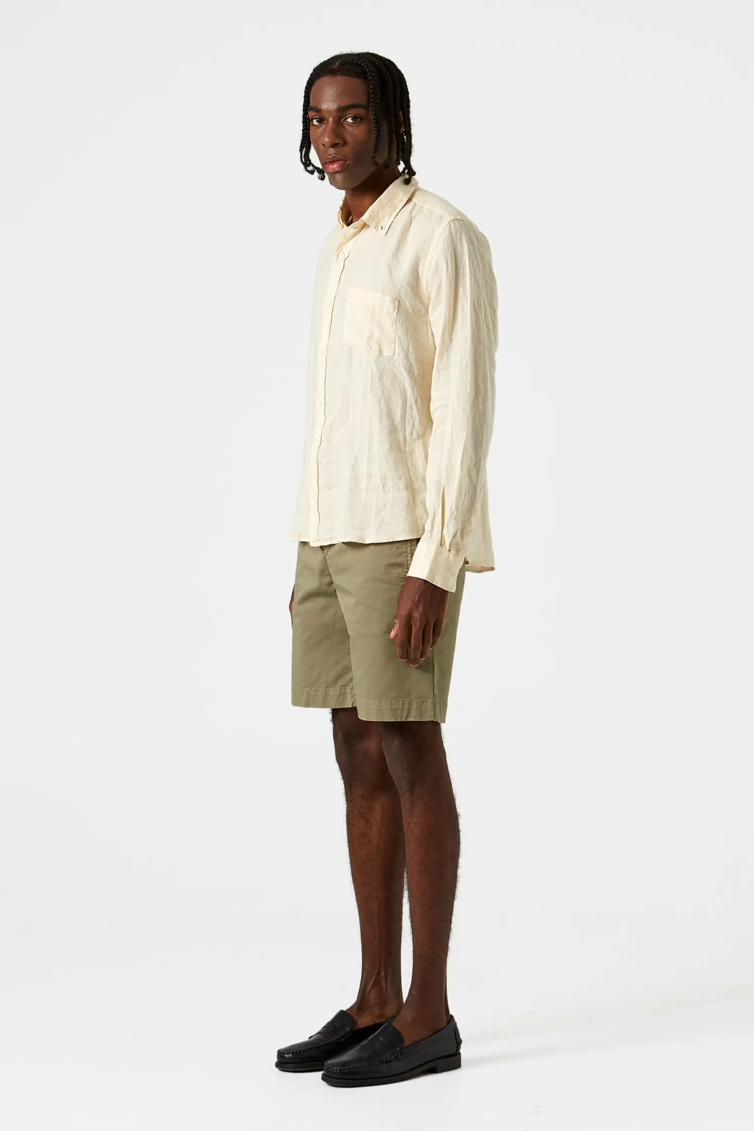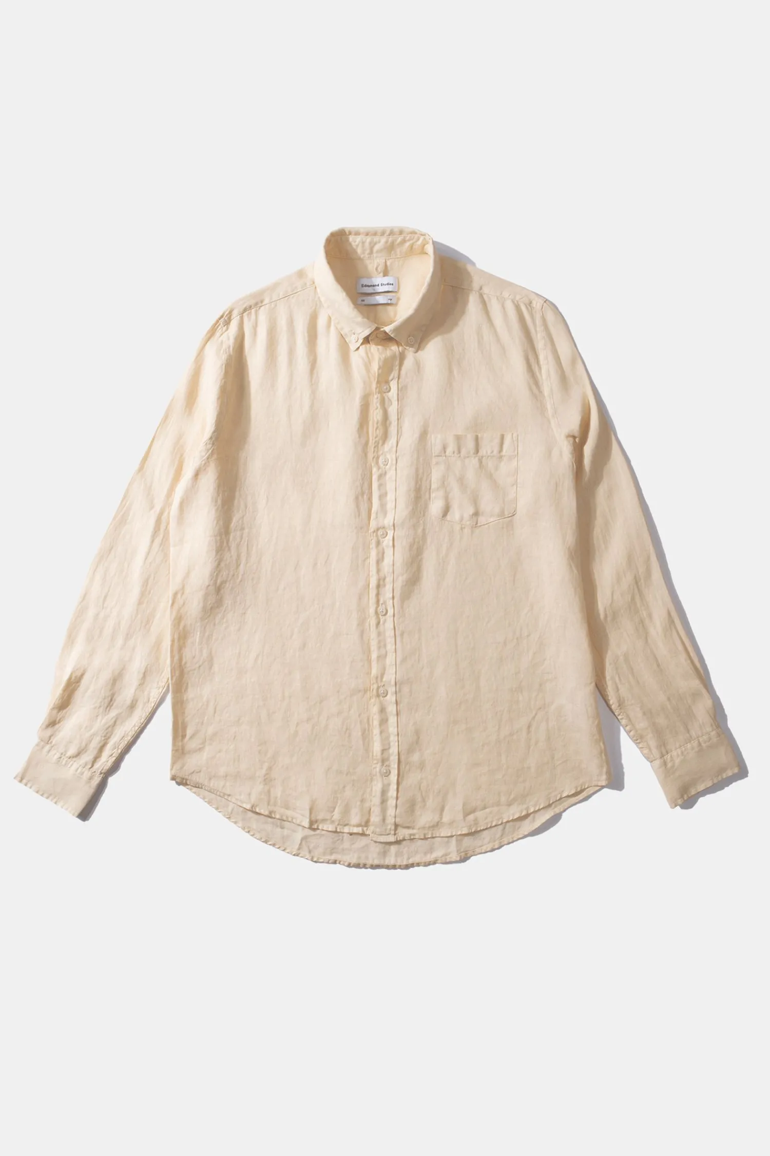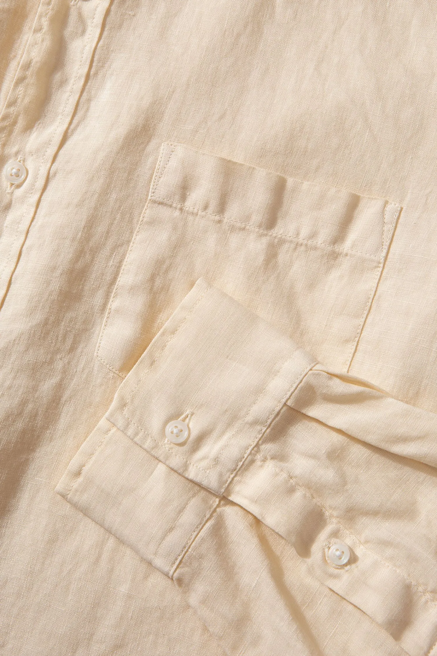 Camisa Lisa Con Botones De Color Beige Y Confeccionada En Portugal. El Cuello De La Prenda Tiene Solapa De Pico, Manga Larga Y Termina En Un Dobladillo Redondeado. Bolsillo En El Lado Izquierdo Del Pecho. Corte Holgado.