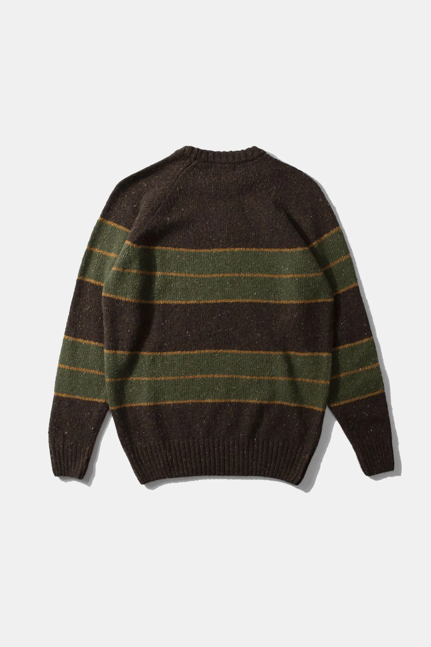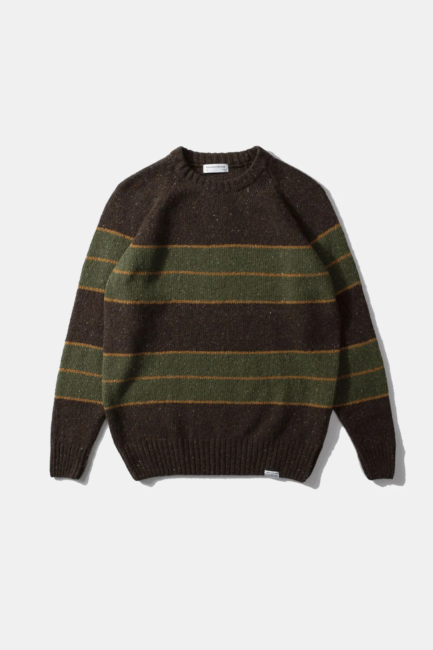 Jersey Multi Rayas En Color Marron, Cuello Redondo, Con Acabado En Tejido De Canale. Confeccionado 100% En Lana, Un Basico Para El Invierno.