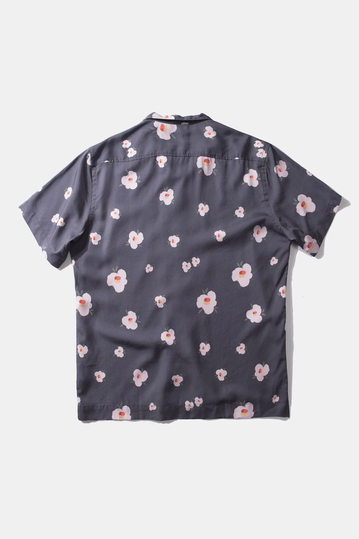 Camisa De Manga Corta Y Corte Recto. Estampado De Orquideas, Cierre Con Botones Y Tiene Cuello Abierto. Tambien Tiene Un Bolsillo En El Lado Izquierdo Del Pecho.