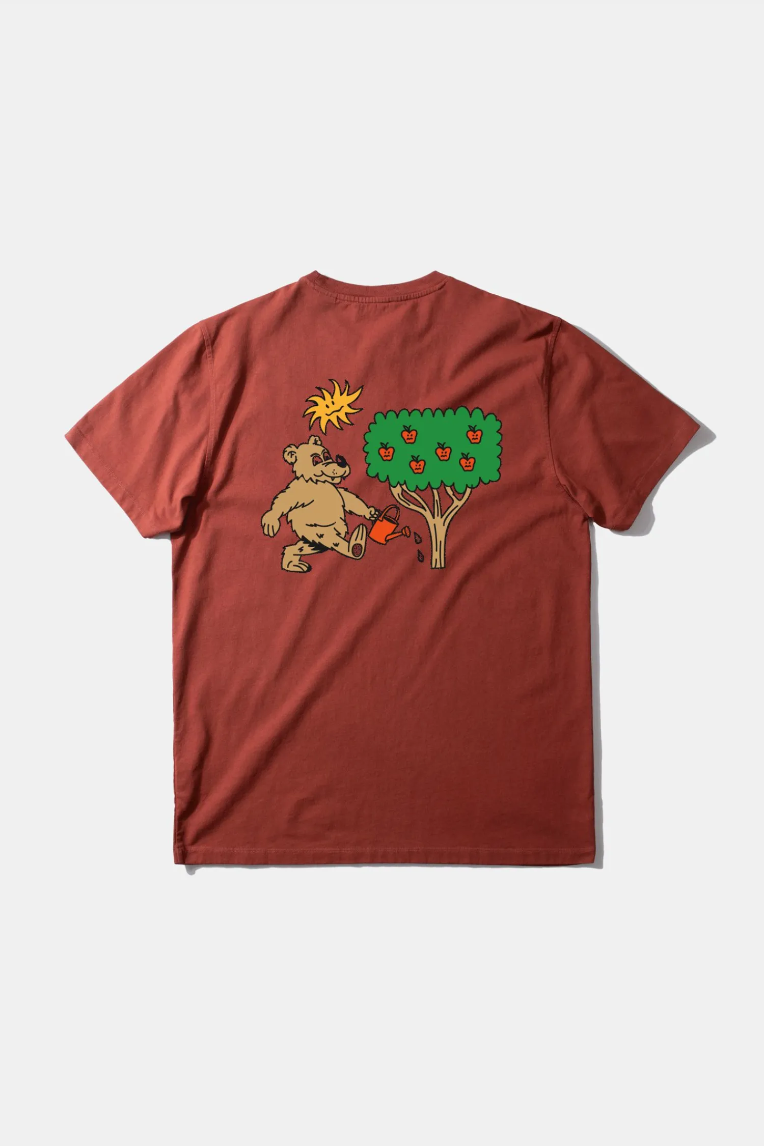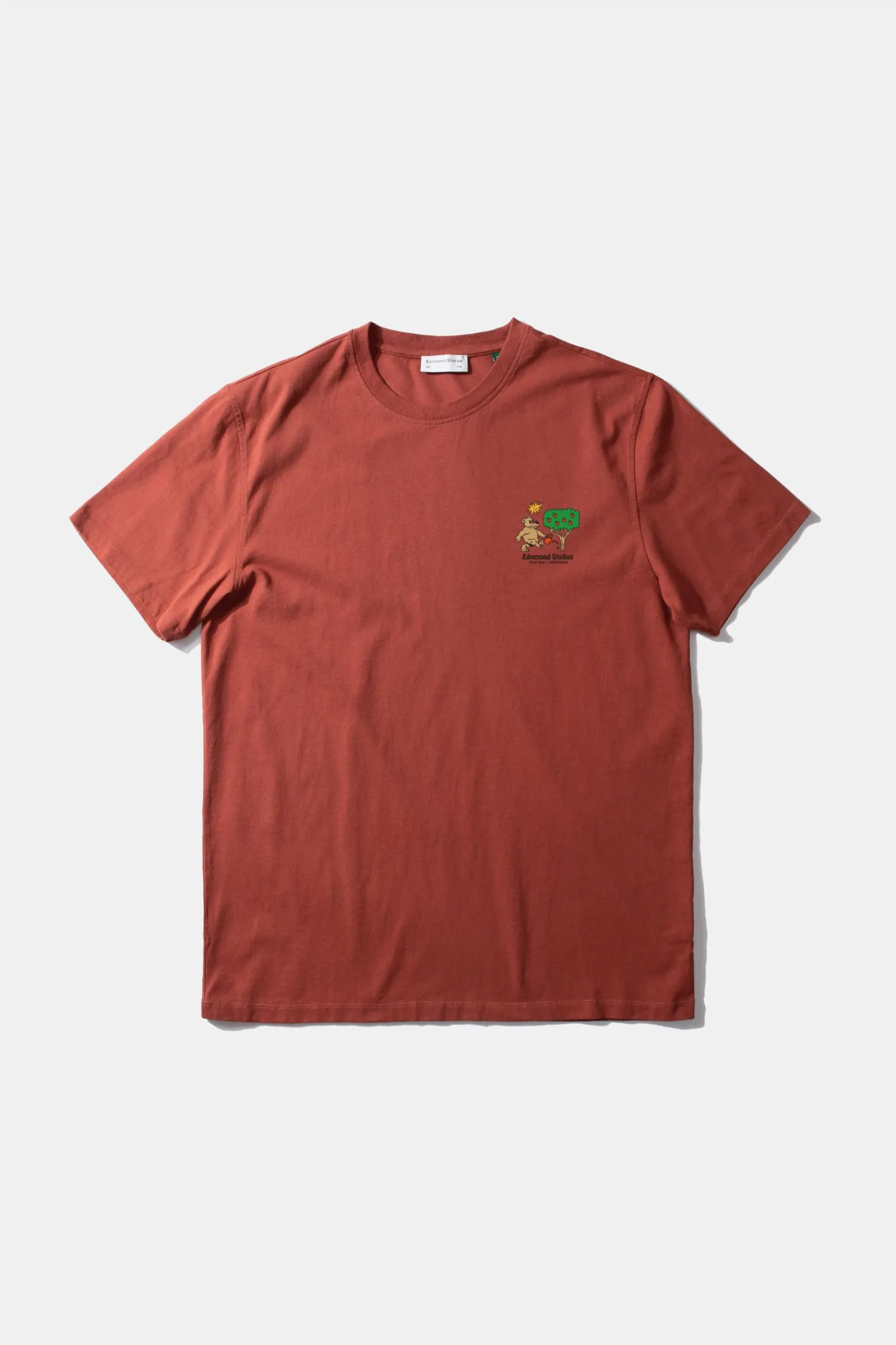 Camiseta De Manga Corta Color Cobrizo. Confeccionada Con 100% Algodon Organico. Con Ilustracion Del Iconico «Oso Y Madrono» En La Parte Delantera Y Trasera.