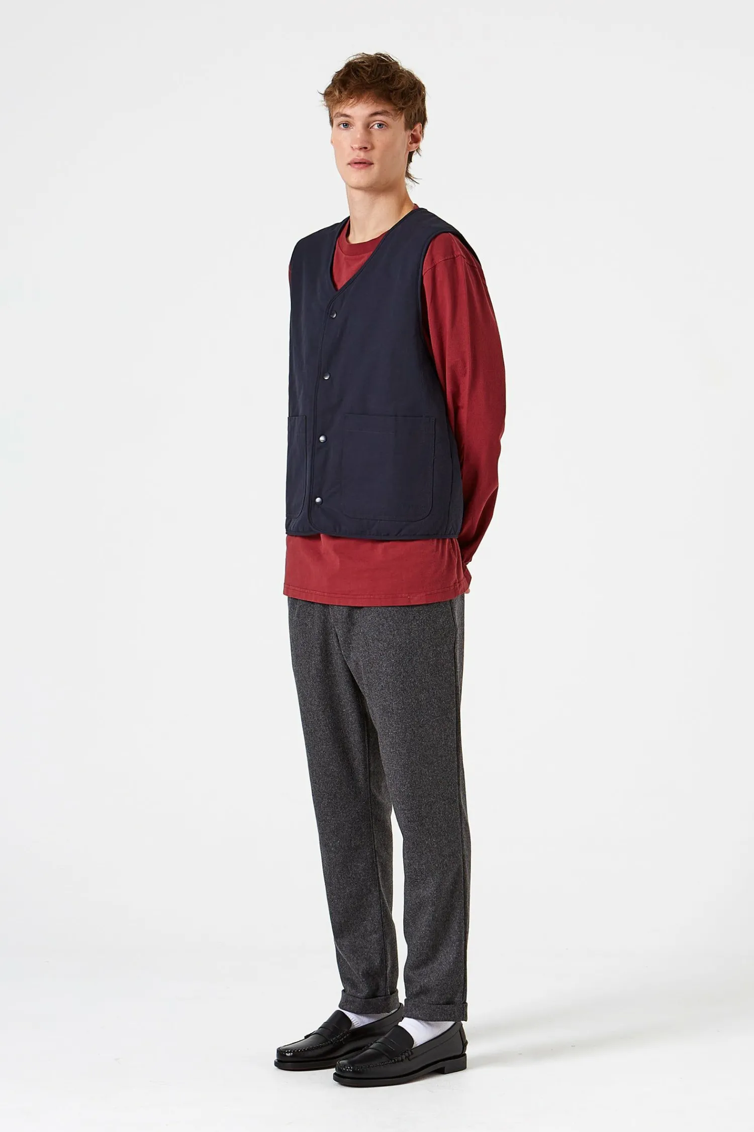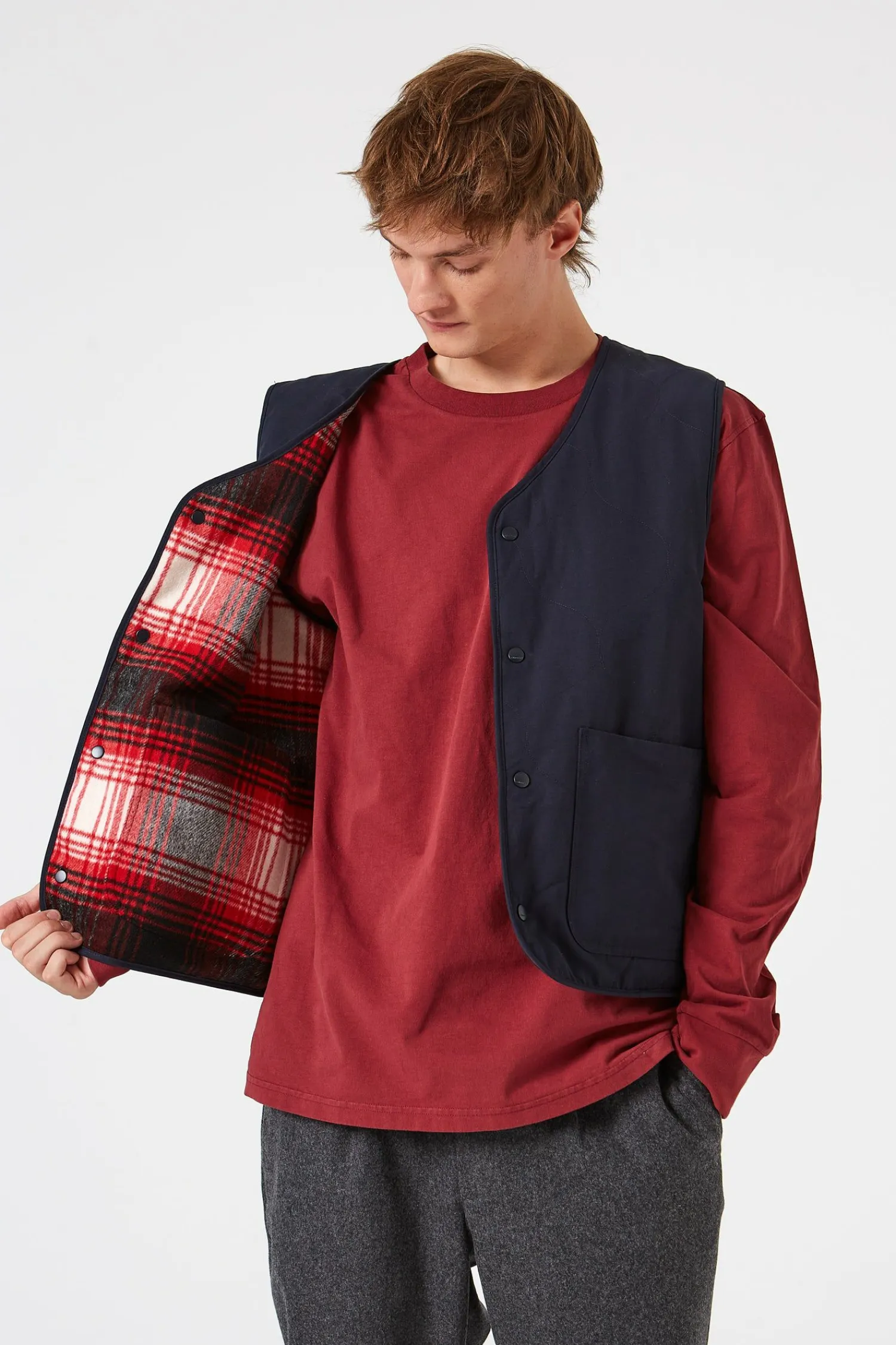 Chaleco Reversible En Color Azul Marino. Cuenta Con Un Interior De Lana Y Un Cierre Con Botones. Se Completa Con Dos Bolsillos Interiores Y Dos Bolsillos Exteriores De Parche.