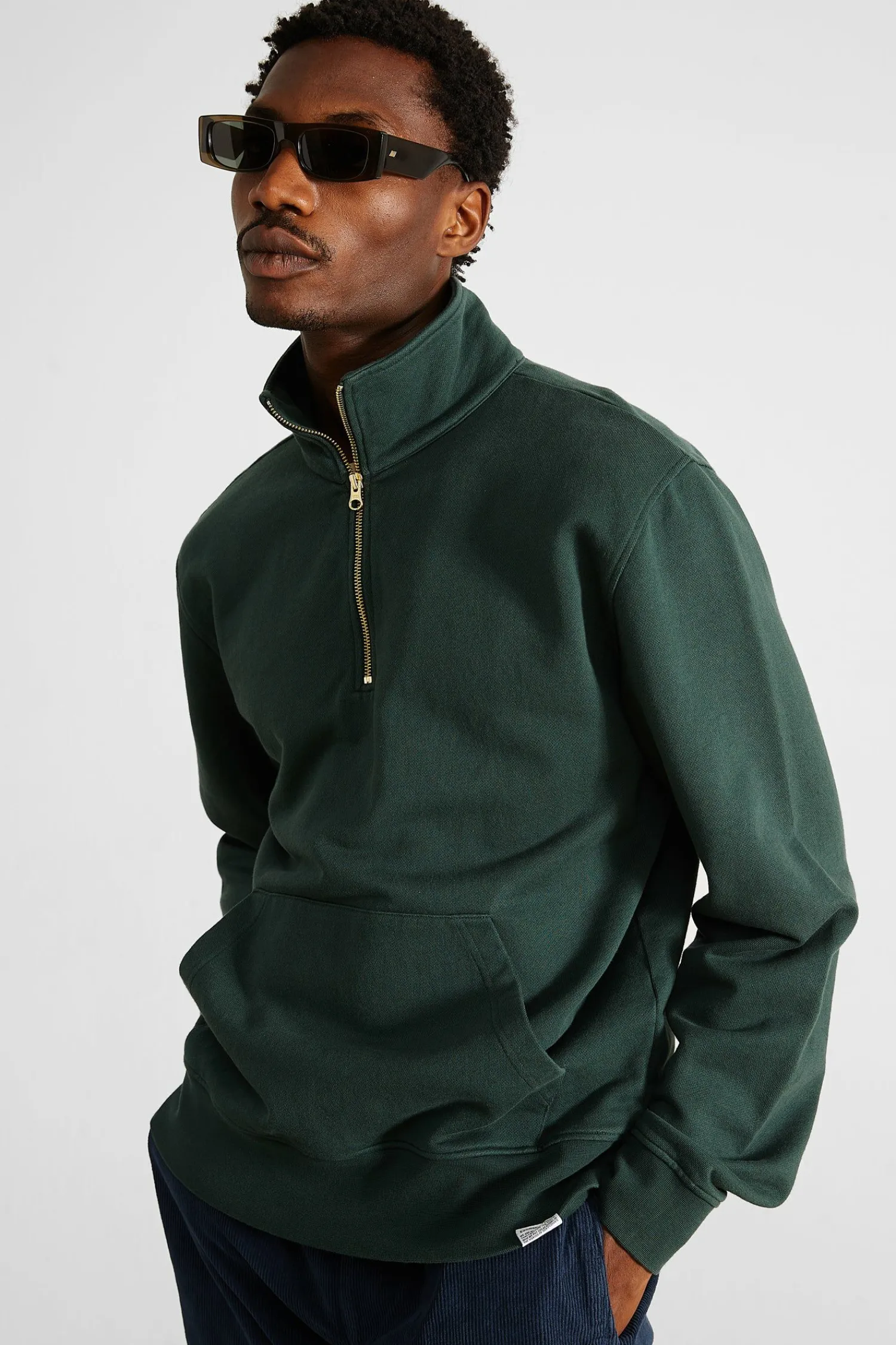 Sudadera Verde Lisa. Confeccionada Con Algodon 100% Organico De 320Gr. Pequena Cremallera Que Llega Al Pecho Y Punos Y Bajo De Canale. Con Un Bolsillo En La Parte Inferior.