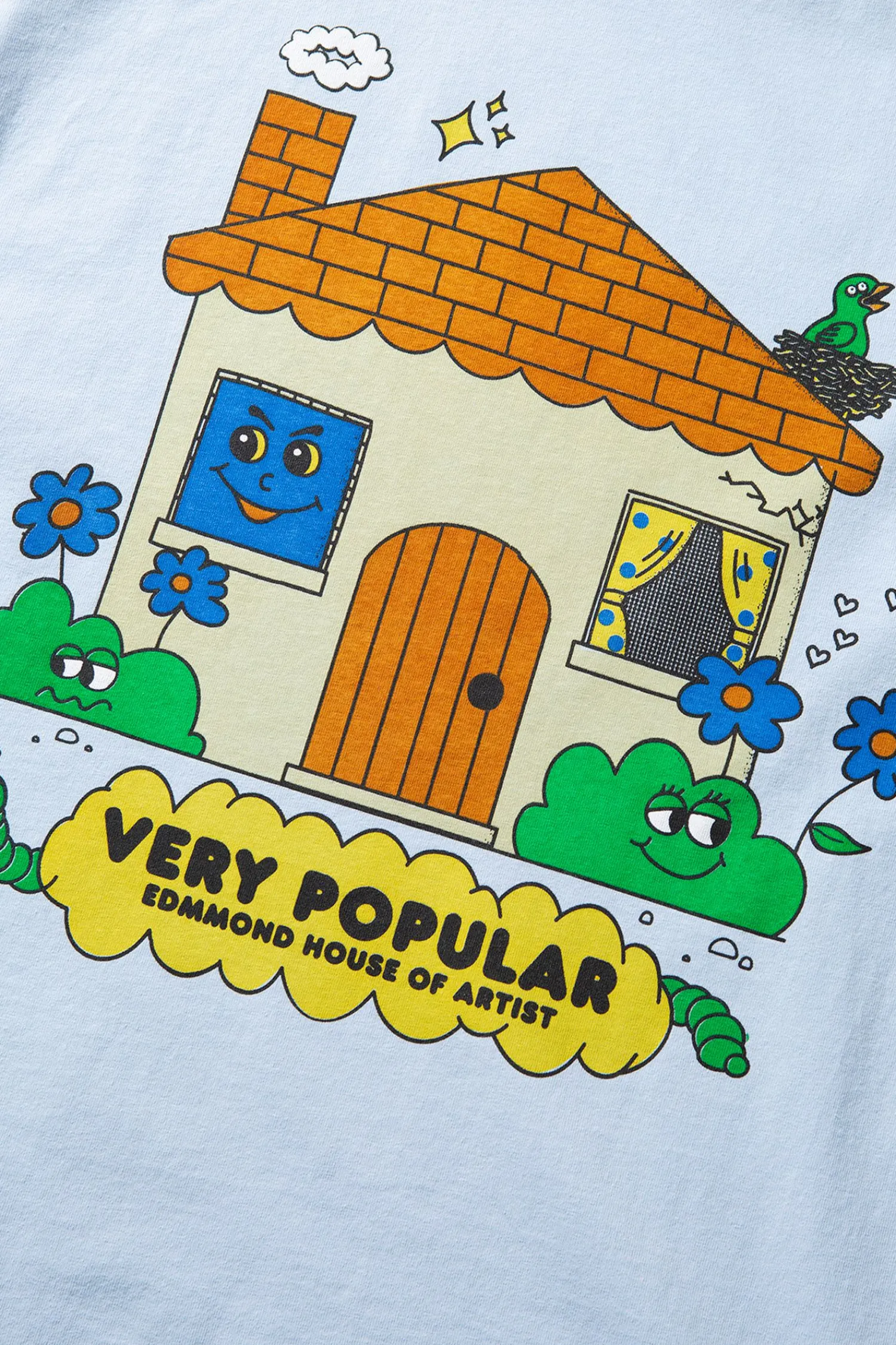 Camiseta Manga Corta Azul Claro. Confeccionada Con 100% Algodon Organico. Ilustracion En El Frente.