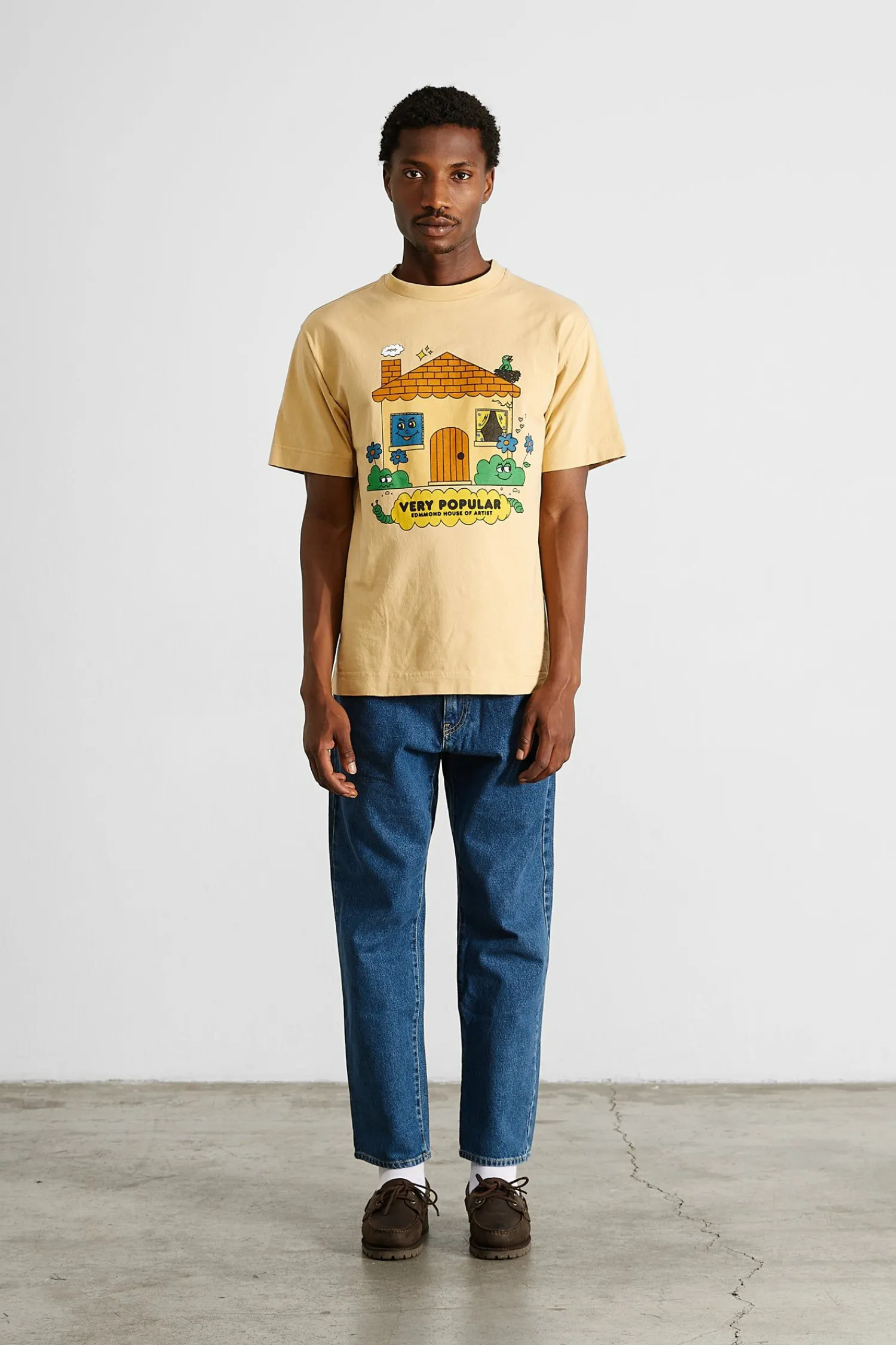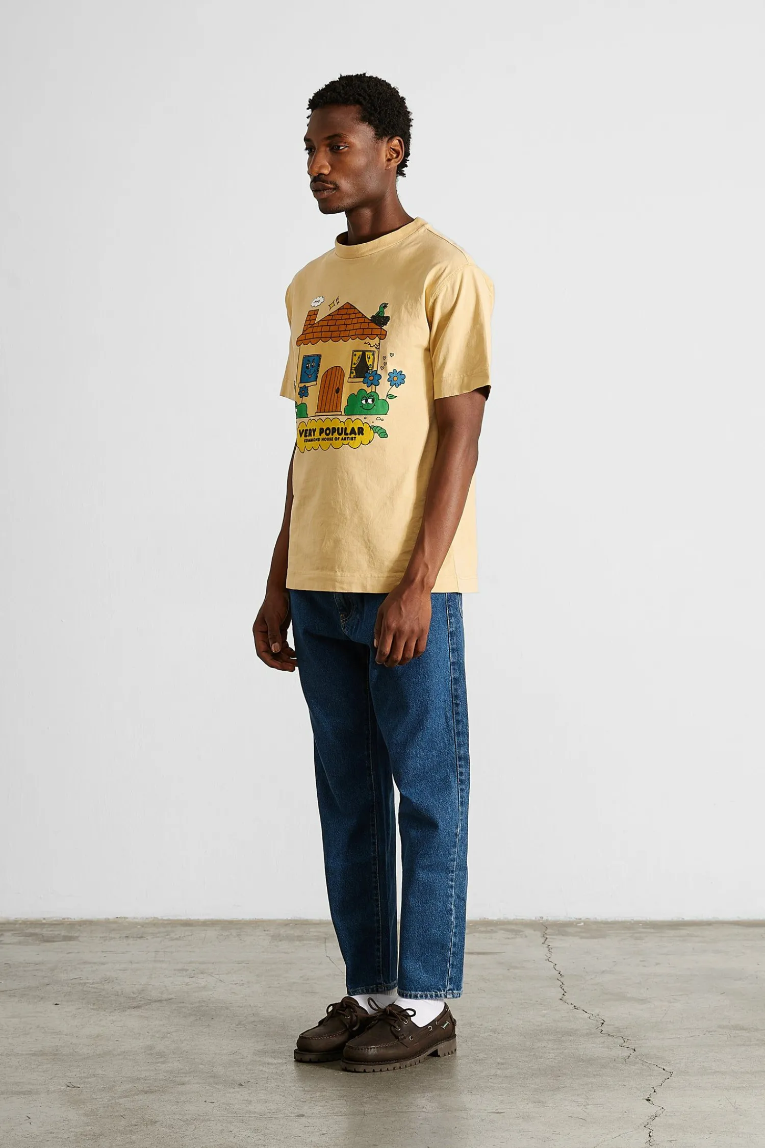 Camiseta De Manga Corta De Color Amarillo Claro. Confeccionada Con 100% Algodon Organico. Ilustracion En El Frente.