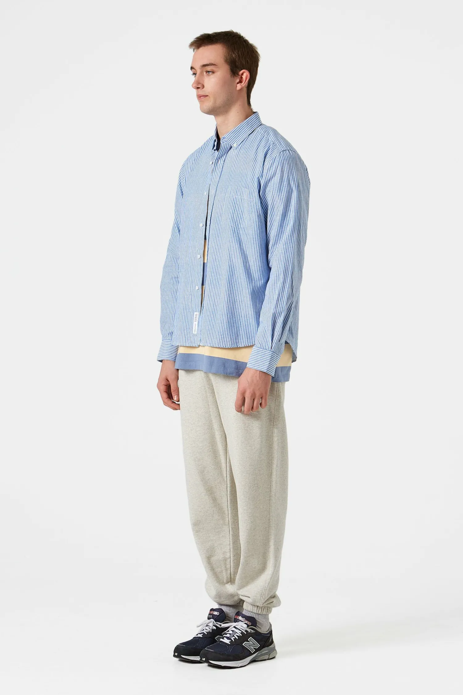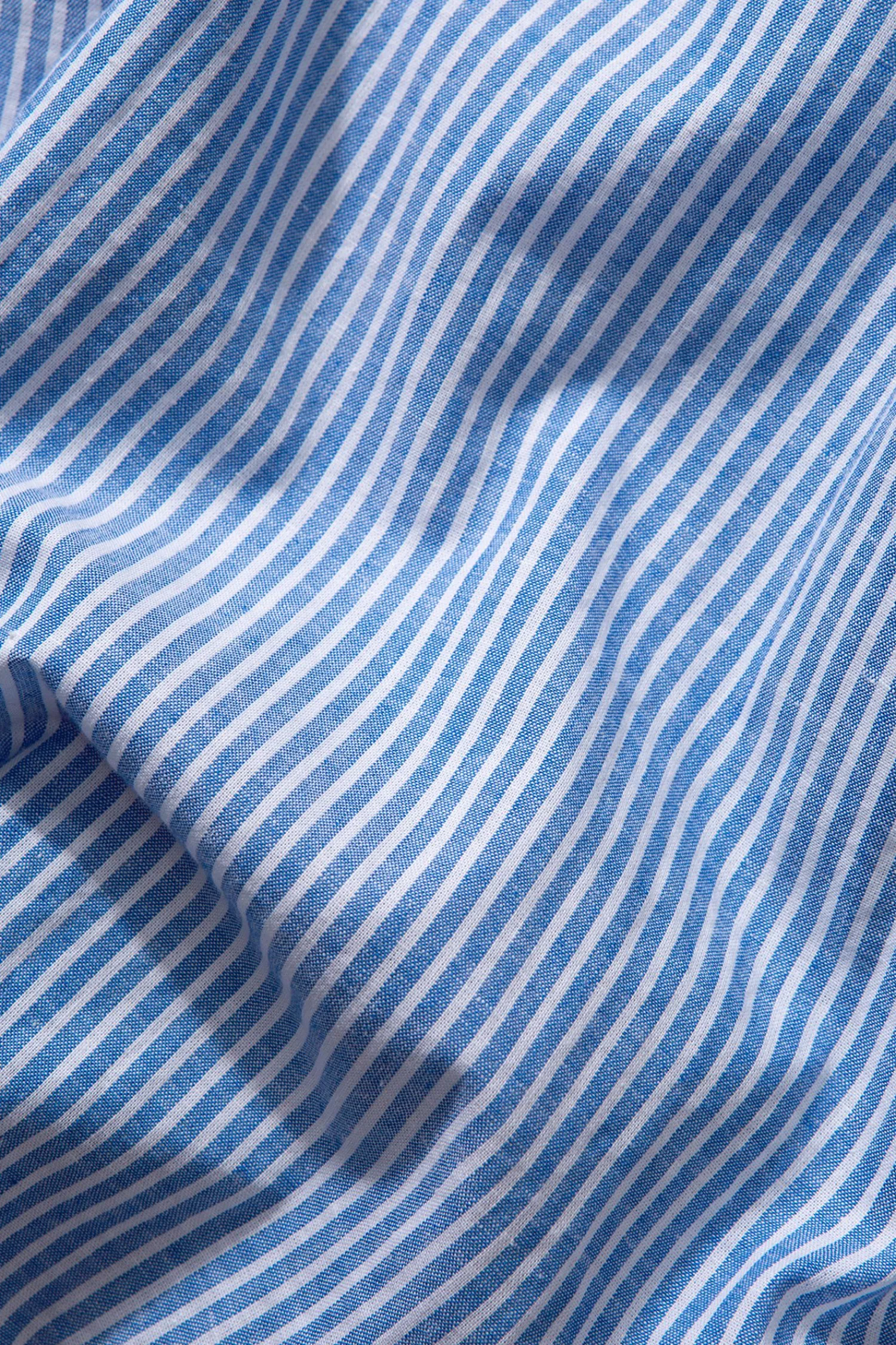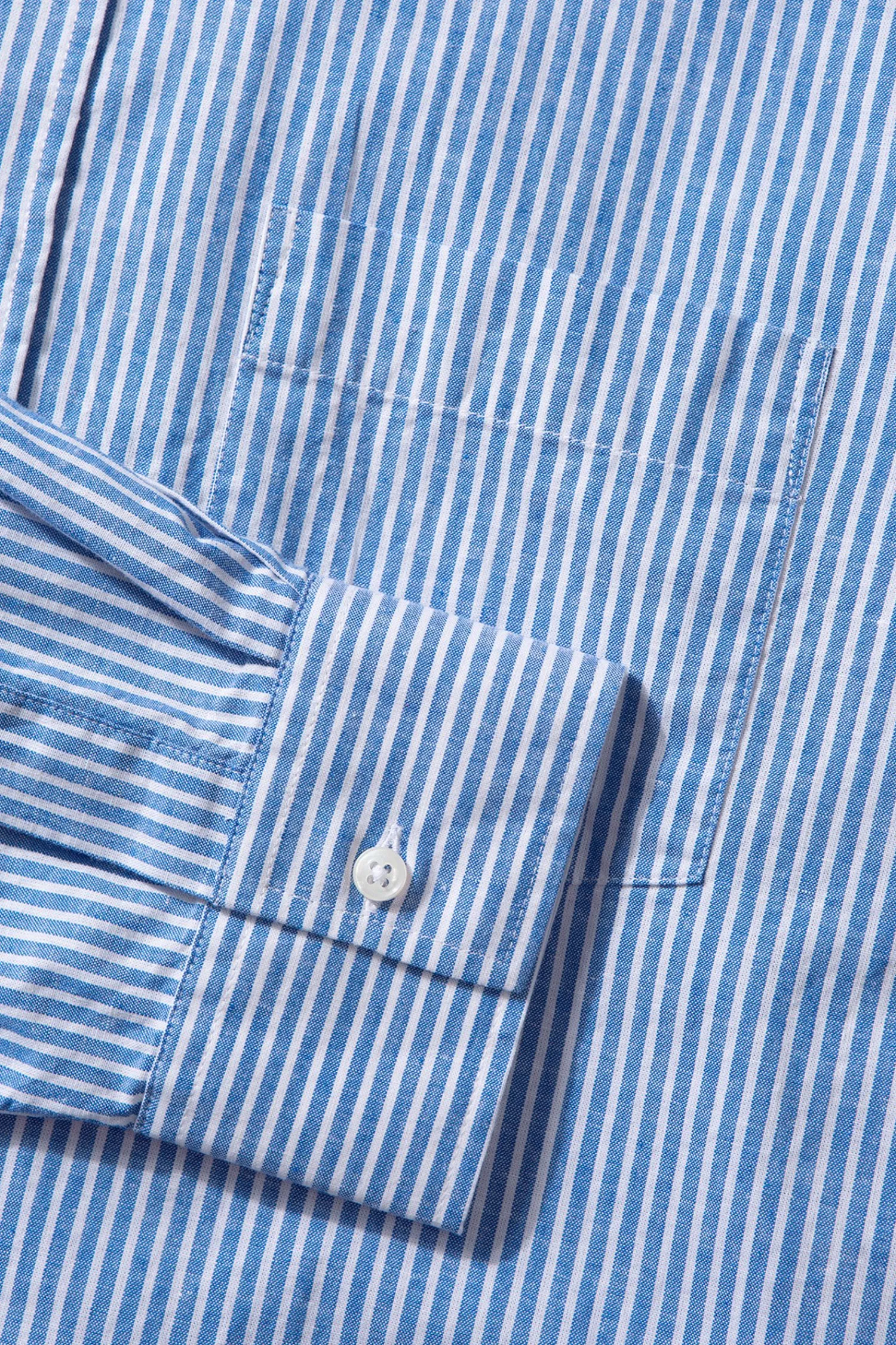 Camisa De Rayas Finas Con Botones, Cuello Abotonado Y Punos Redondos. Corte Recto. Fabricada En Algodon Organico.