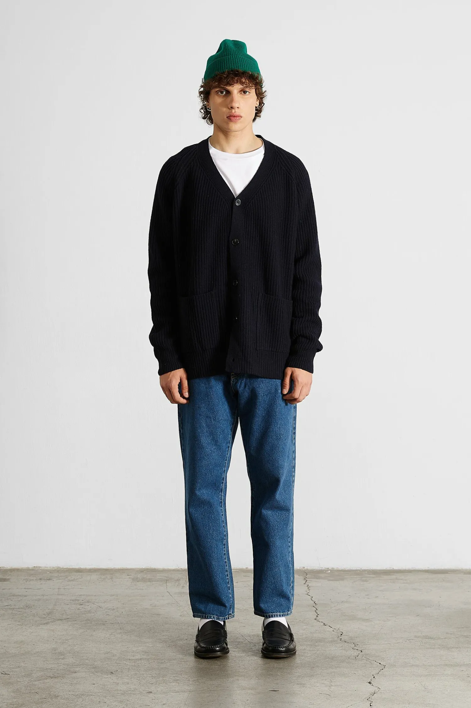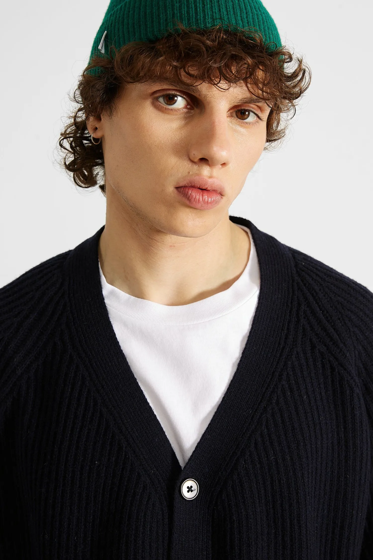 Cardigan De Punto Canale Azul Marino. Se Cierra En El Centro Con Botones Y Tiene Dos Bolsillos En La Parte Inferior Delantera. Fabricado Con Algodon.